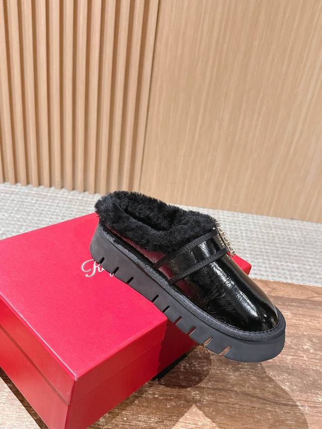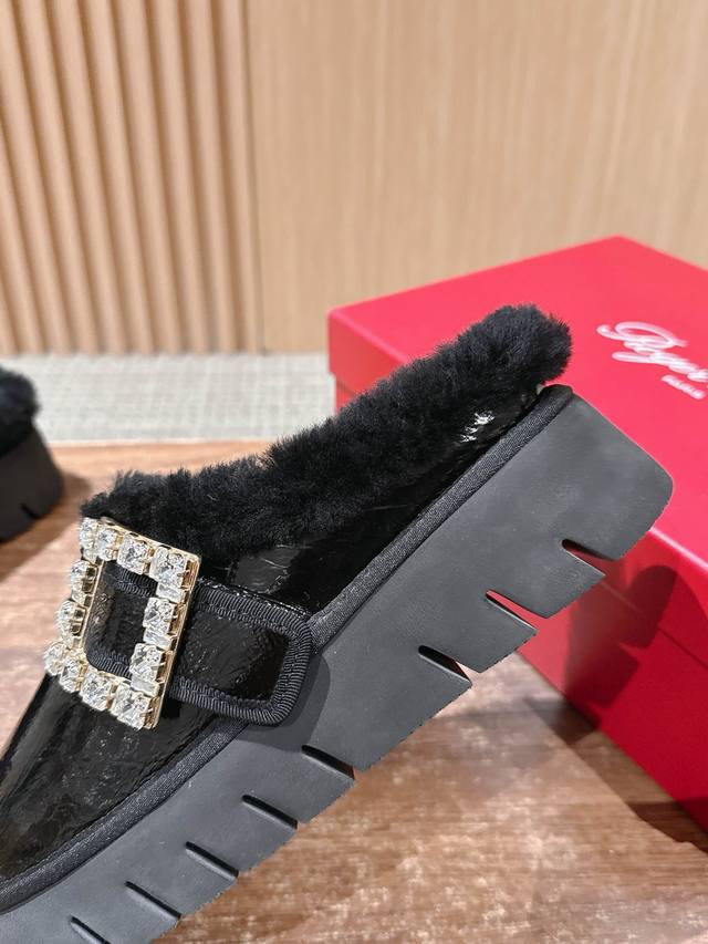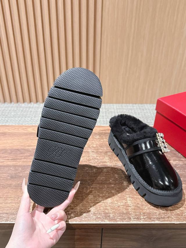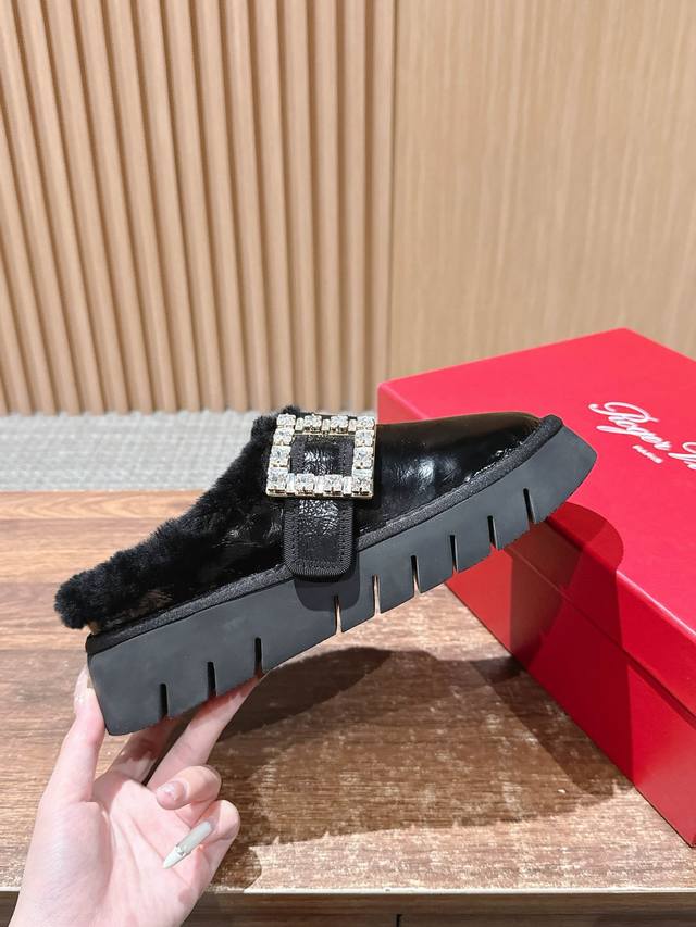 Rv Winter Viv 罗杰维维亚钻扣毛毛拖 非常柔软绒面皮革手工制作 配以剪羊毛衬里和闪钻饰扣 温暖又不是时尚 冬天真的神器 Size:35-39 40