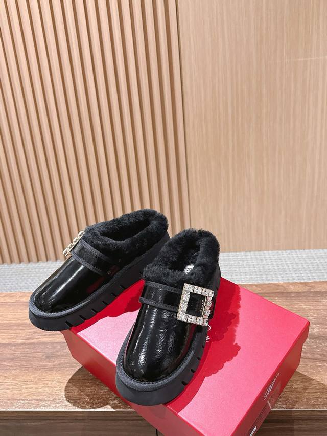 Rv Winter Viv 罗杰维维亚钻扣毛毛拖 DDD 非常柔软绒面皮革手工制作 配以剪羊毛衬里和闪钻饰扣 温暖又不是时尚 冬天真的神器 DDD Size:35-39 40 41定制不退换 DDD