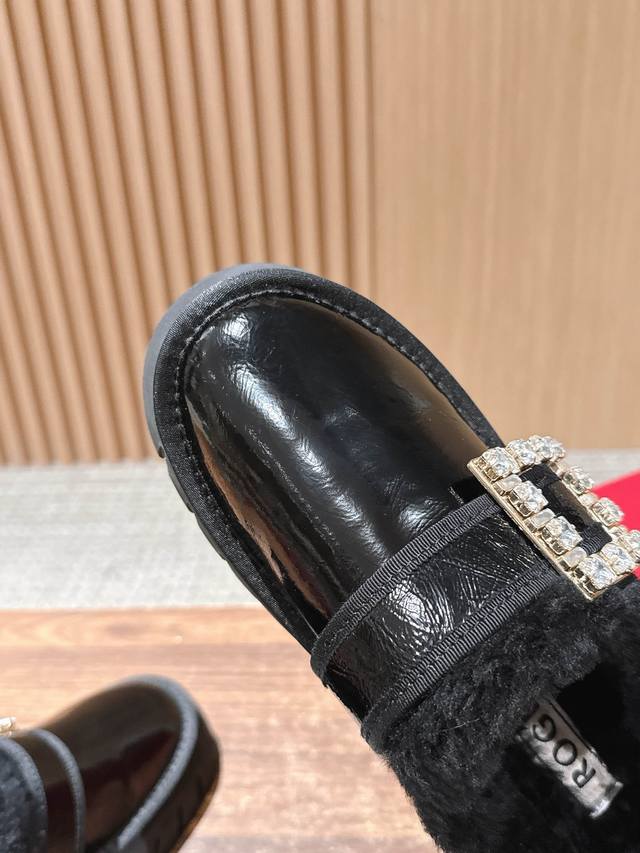 / Rv Winter Viv 罗杰维维亚钻扣毛毛拖 非常柔软绒面皮革手工制作 配以剪羊毛衬里和闪钻饰扣 温暖又不是时尚 冬天真的神器 Size:35-39 40