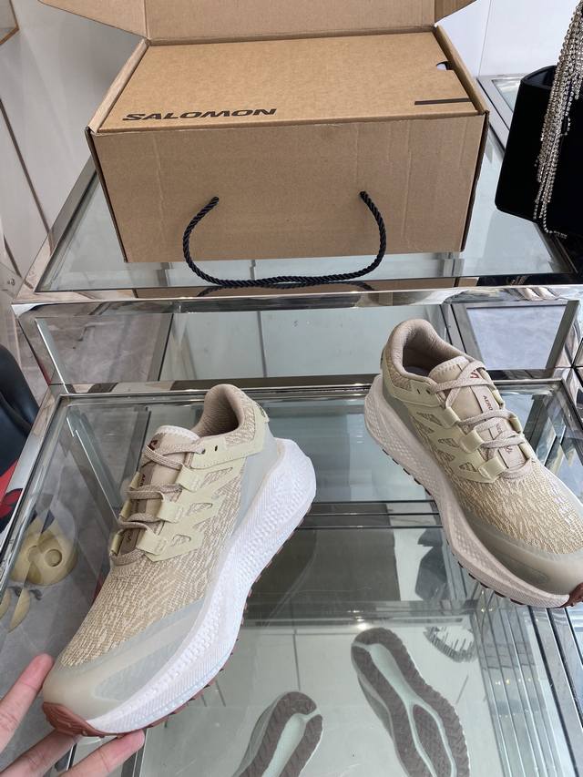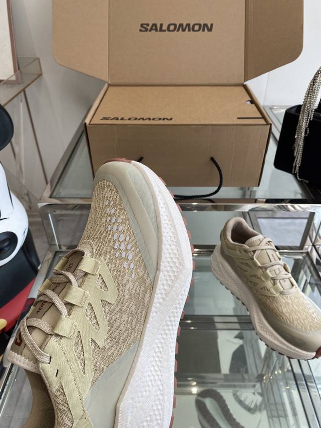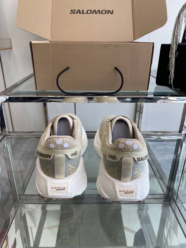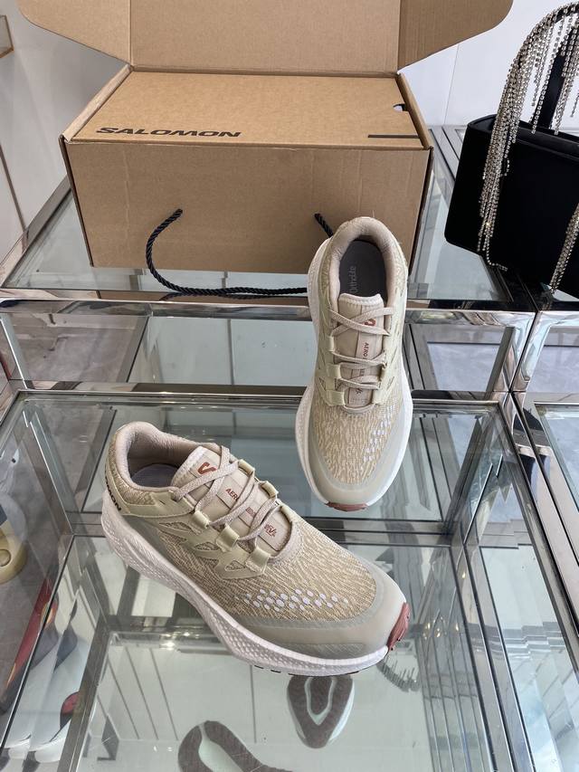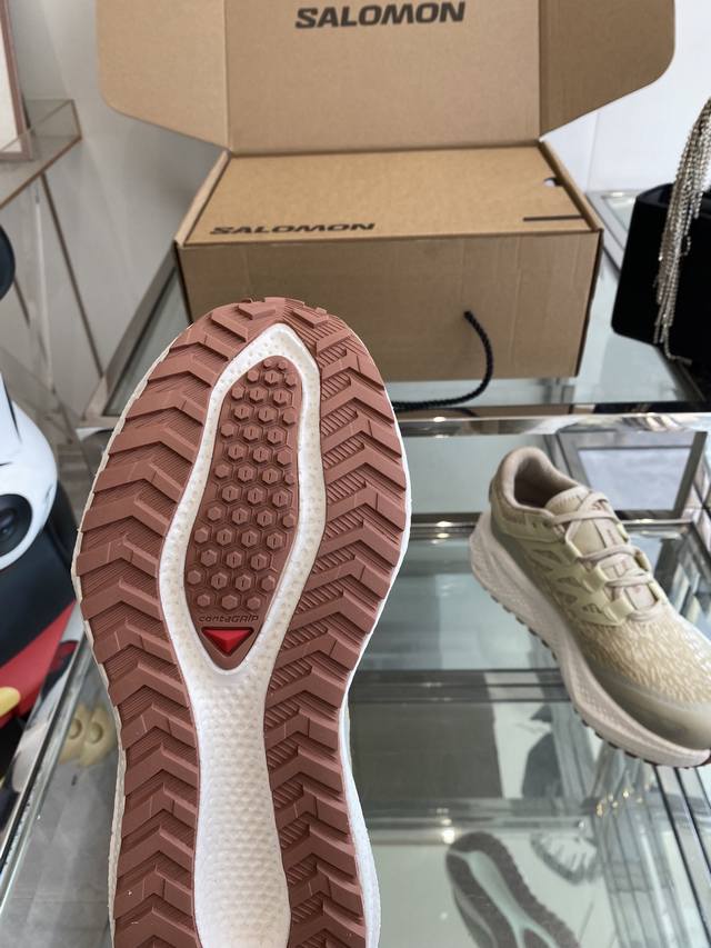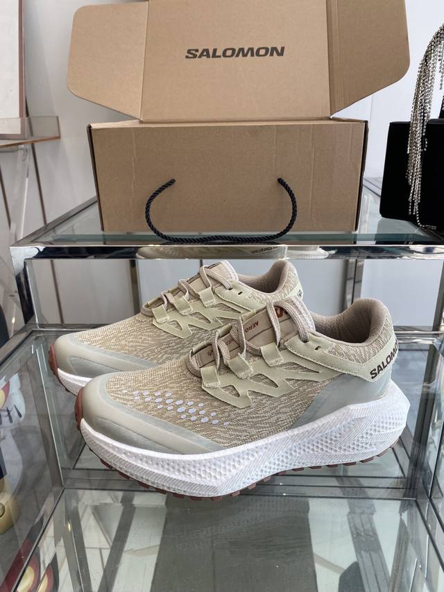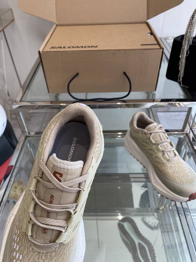 Salomon 萨洛蒙 第三代 Aero Glide 3 Grvl 鞋面 Grvl版本编织更加紧密、外侧的压胶也有防污防泼水的功效 透气性很好 鞋头和中足较宽 可以适配更多脚型 高弹半内靴鞋舌 前段与鞋面缝合 鞋舌领也是弹力收口设计 针对户外设计 有效防止砂石的进入 鞋带 硬质扁平螺纹设计 内有硬质港宝 中等强度 蜂窝反光片 海绵填充足 鞋垫 4Mm Orthoiite模压脚垫 大底 米白色超临界发泡爆米花材质 科技大底就像穿在海绵上一样舒服且有弹性 Grvl版本采用的是山地抓地更好的V型齿花 码数:35
