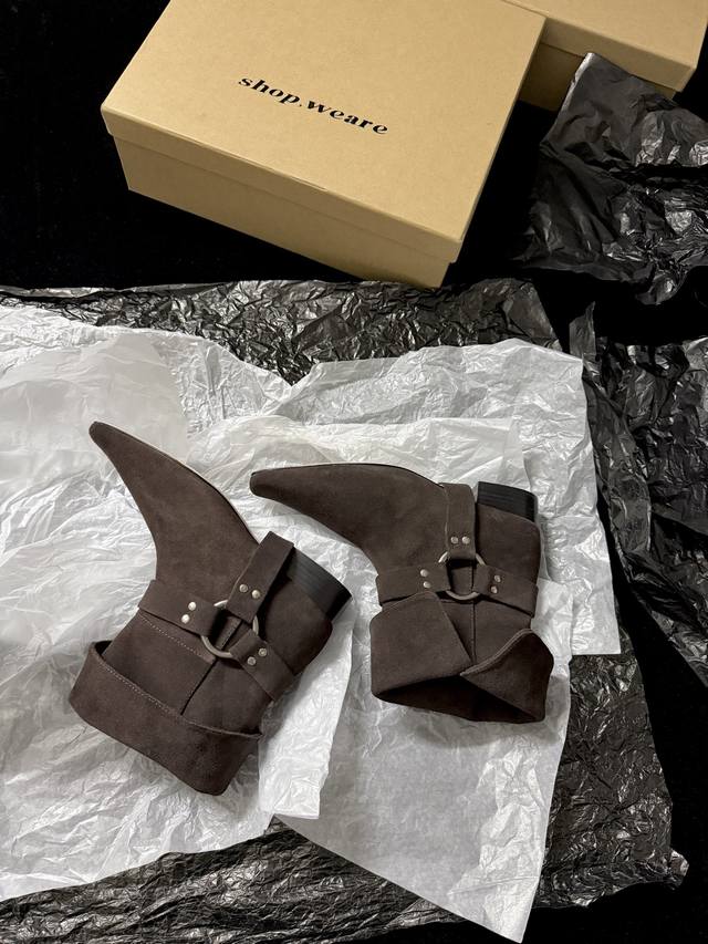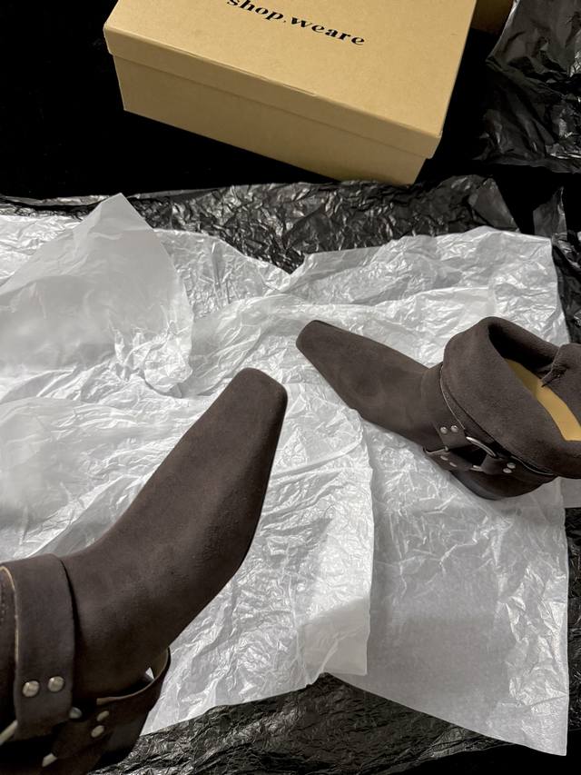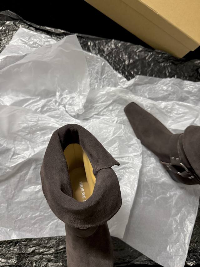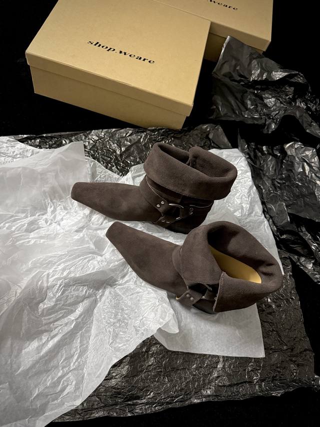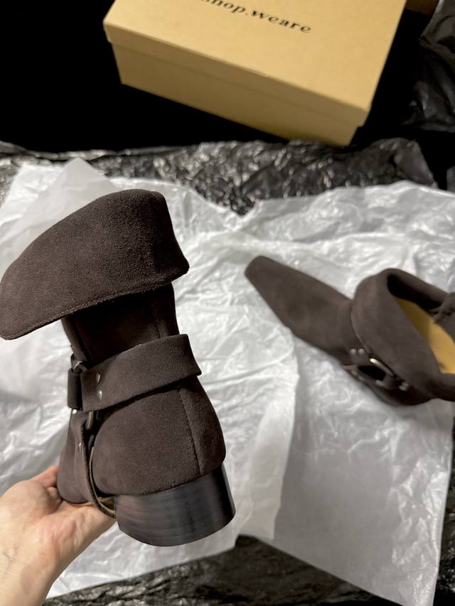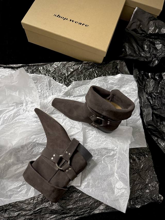 / Shop Weare 新品靴 小方头骑士靴 既有西部特色又复古时髦 极简风格配有金属扣饰 可折叠穿出不一样的风格以及搭配 墙裂推荐 鞋面进口麂皮 内里进口水染牛