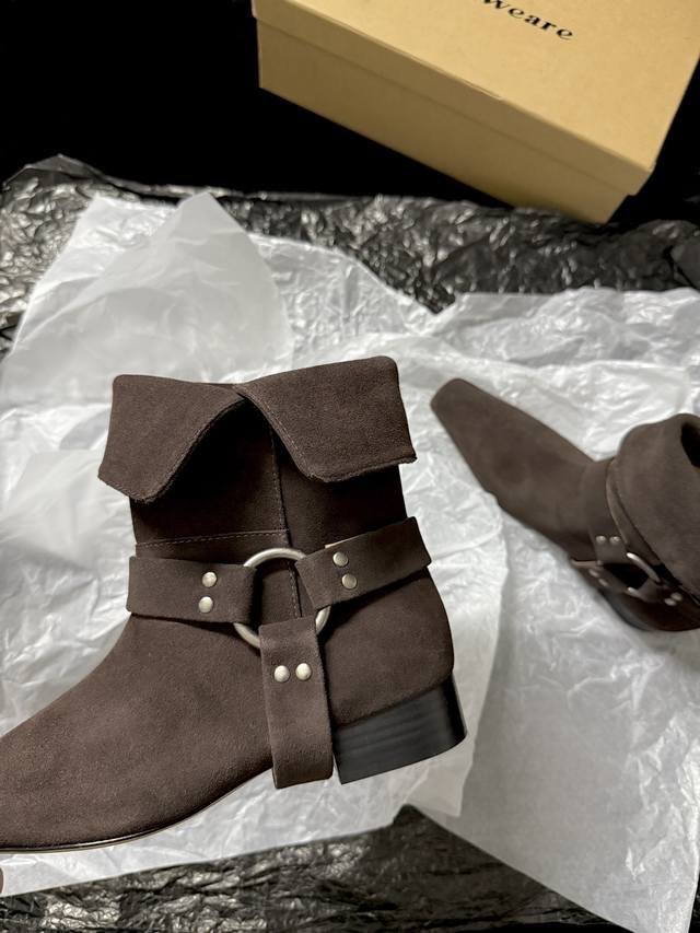 Shop Weare 新品靴 小方头骑士靴 既有西部特色又复古时髦 极简风格配有金属扣饰 可折叠穿出不一样的风格以及搭配 墙裂推荐 鞋面进口麂皮 内里进口水染牛