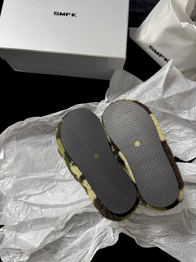 / Smf* 单品 这双迷彩毛毛拖 把街头酷感和慵懒舒适焊死了 迷彩毛绒自带潮酷Buff 金属十字标又飒又有态度 踩上脚就是松弛感天花板 在家是慵懒时髦精 出门搭个