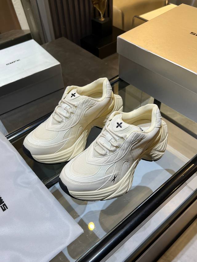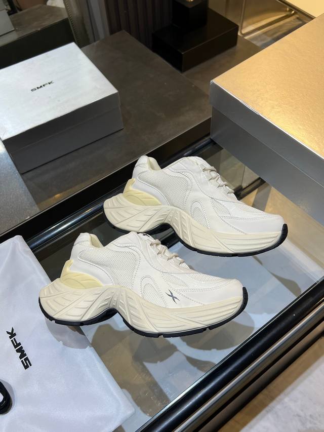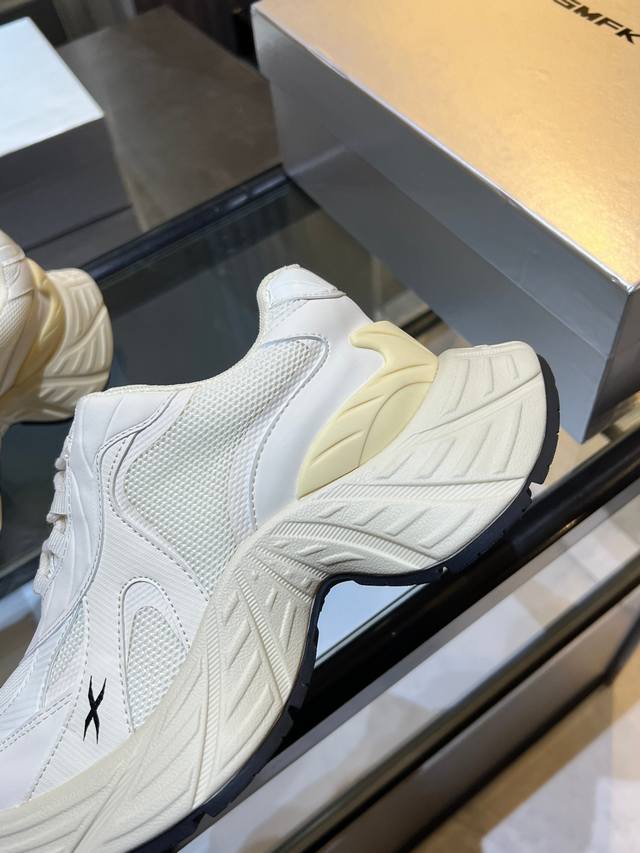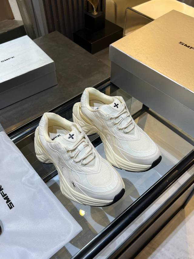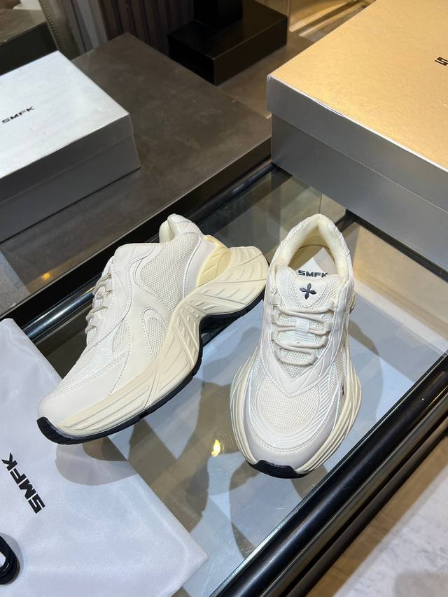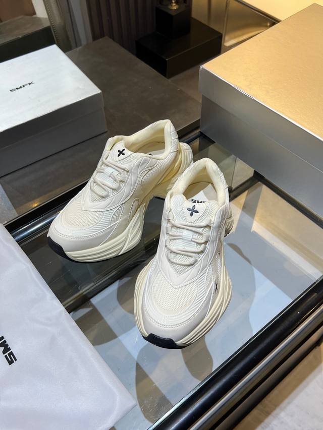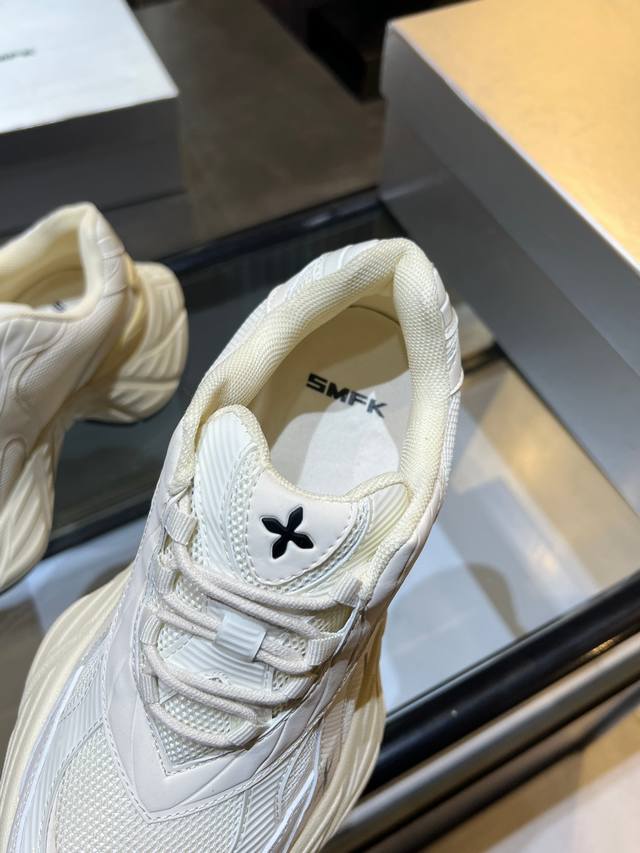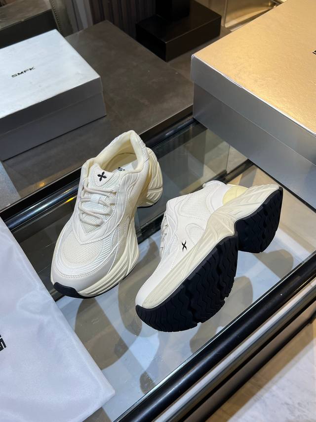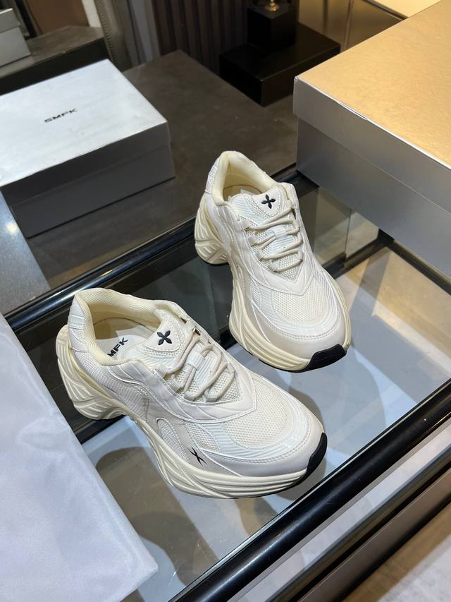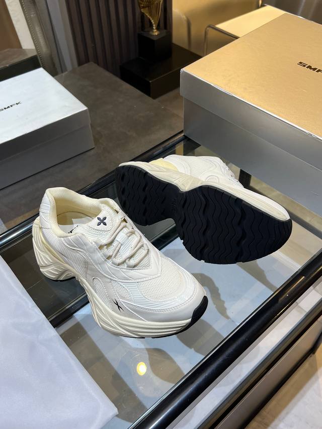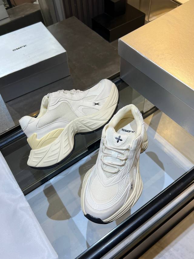 Smfk品牌的厚底老爹鞋,鞋面采用黑色和白色拼接设计,带有独特的十字花纹标识鞋底厚实,具有良好的**效果,适合追求时尚和舒适的人群,在潮流界颇受欢迎,常用于日常穿搭和休闲场合。 DDD 鞋面:Tpu+织物+合成革 DDD 内里:网布 DDD 鞋底:橡胶 DDD 码数:35-40 DDD 厂价p: DDD