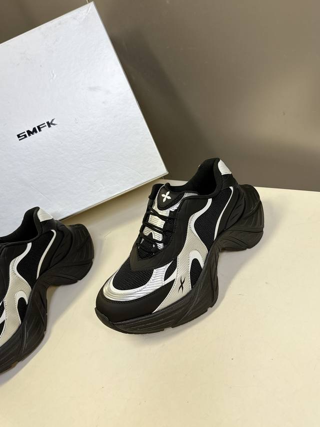 / Smfk小众潮牌最新款复古运动鞋 厚底鞋 这款专业慢跑鞋,鞋身以多种轻便柔软, 材料拼接制作,网眼面料设计更加轻盈透气 比其他厚底运动鞋更轻,使穿着者运动时更省