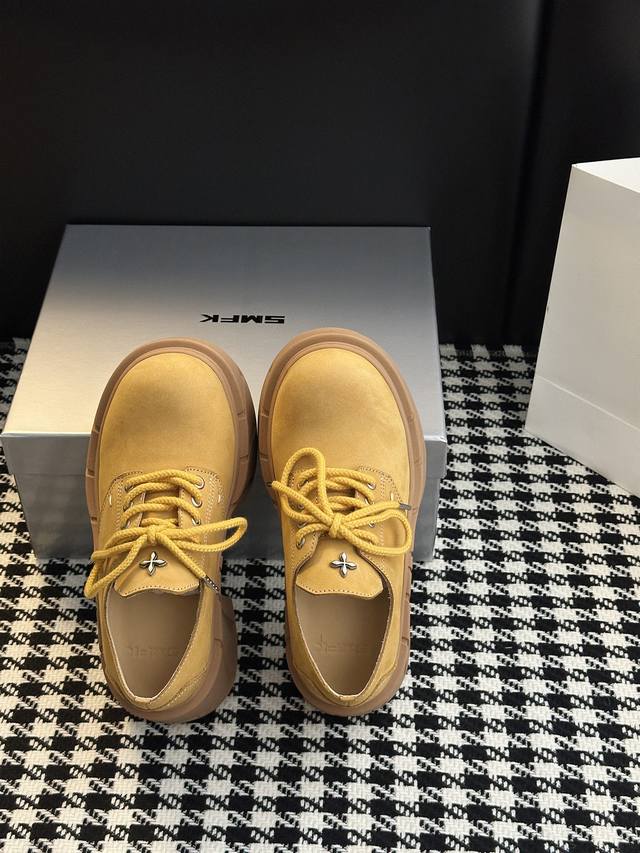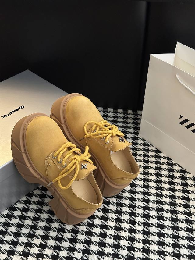 / Smfk新品厚底鞋打造舒适而质感的经典鞋履。原版一比一开模,大气的造型与经千百次调整的腰位线条,独具经典。 圆圆的鞋头特别显腿细鞋面材质:头层牛皮鞋里材质:羊皮