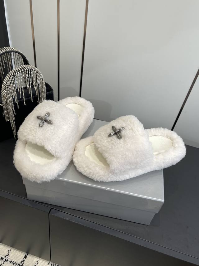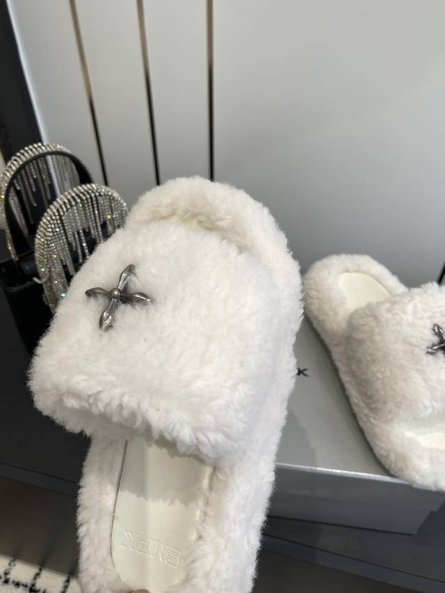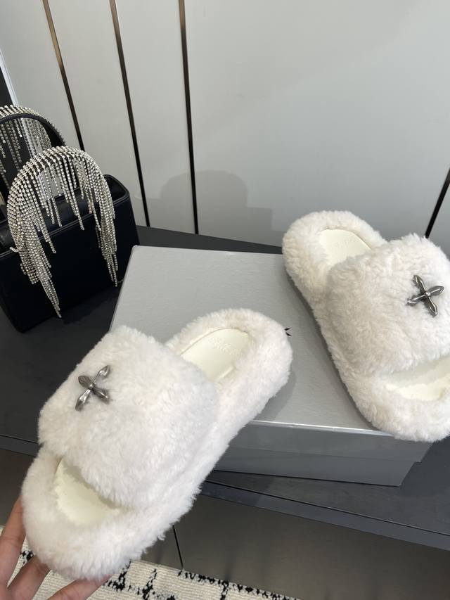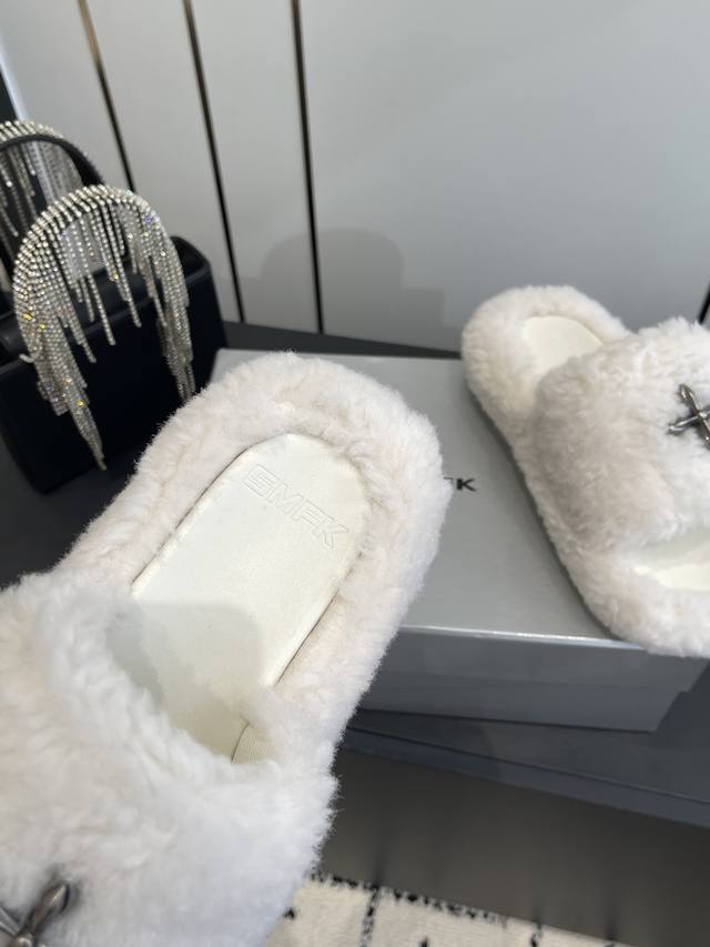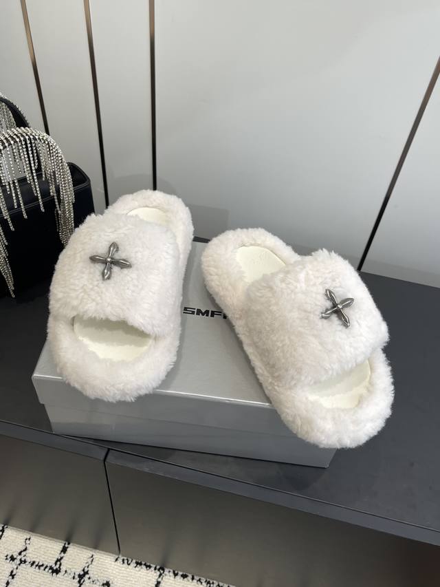 Smfk 小众潮牌 25Ss秋冬新款 厚底 面包 拖鞋 有点野性有点个性,这一季的Smfk真的让人心动不已 超级火的一款面包拖,被种草得不行 各大网红博主都在穿它,巧妙纳入品牌元素后时尚百搭、辣妹至爱,被完美释放 鞋面:采用原版进口羊毛 内里垫脚:羊皮 鞋底:原版定制Tpu橡胶大底 码数:35-39 40订做