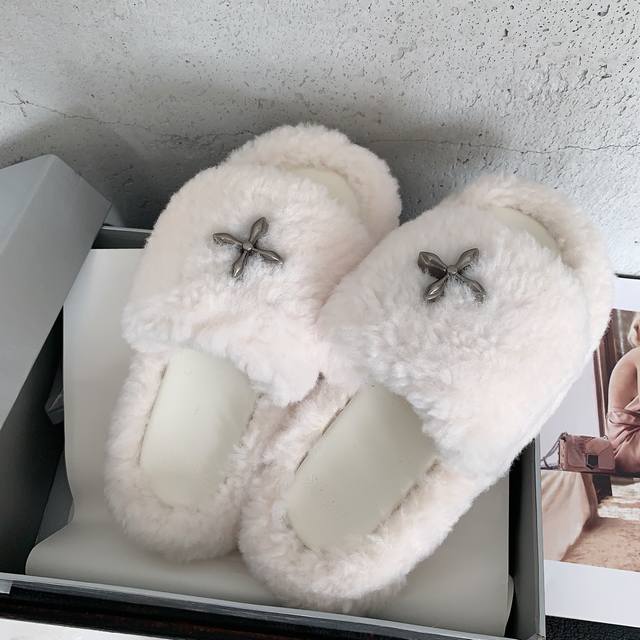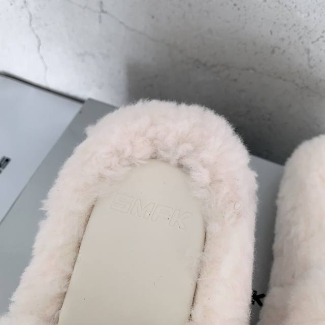 Smfk 2025秋冬新款厚底毛毛拖鞋,全新Sm十字花系列,增高5Cm,行走的大长腿对版羊羔毛面料,羊皮内里,私模橡胶防滑大底,码数:35-39# 40#可订做
