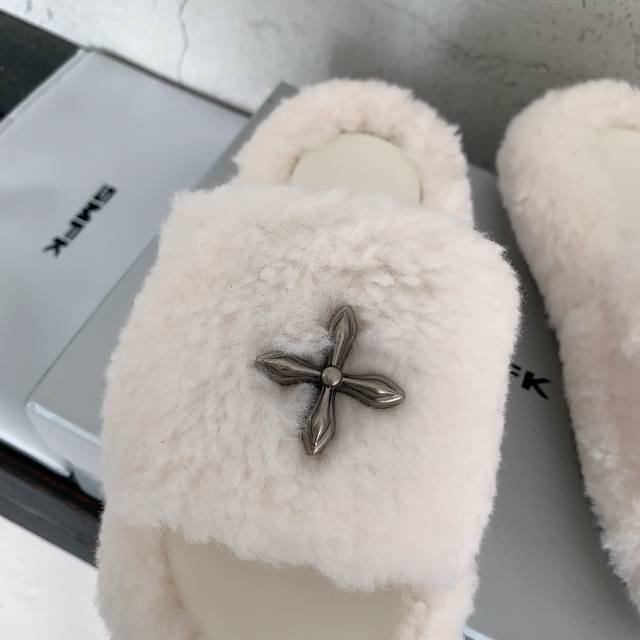 Smfk 2025秋冬新款厚底毛毛拖鞋,全新Sm十字花系列,增高5Cm,行走的大长腿对版羊羔毛面料,羊皮内里,私模橡胶防滑大底,码数:35-39# 40#可订做不退换