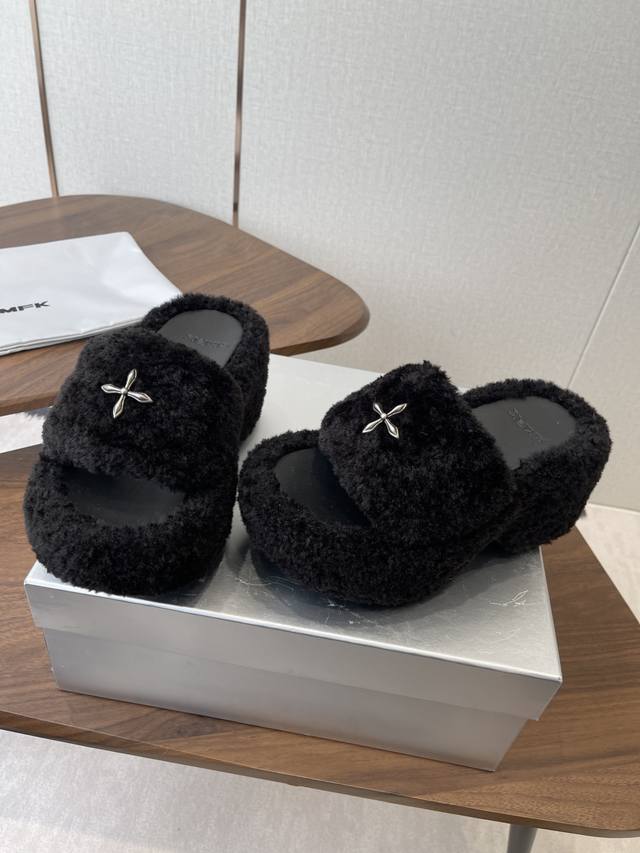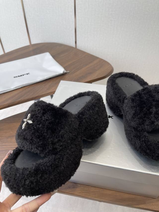Smfk 25Ss 秋冬 新品 厚底 毛毛拖鞋 有点野性有点个性,这一季的Smfk真的让人心动不已,毛拖简直直击内心!超级炫酷,家人们沙漠战神快Get起来 鞋面