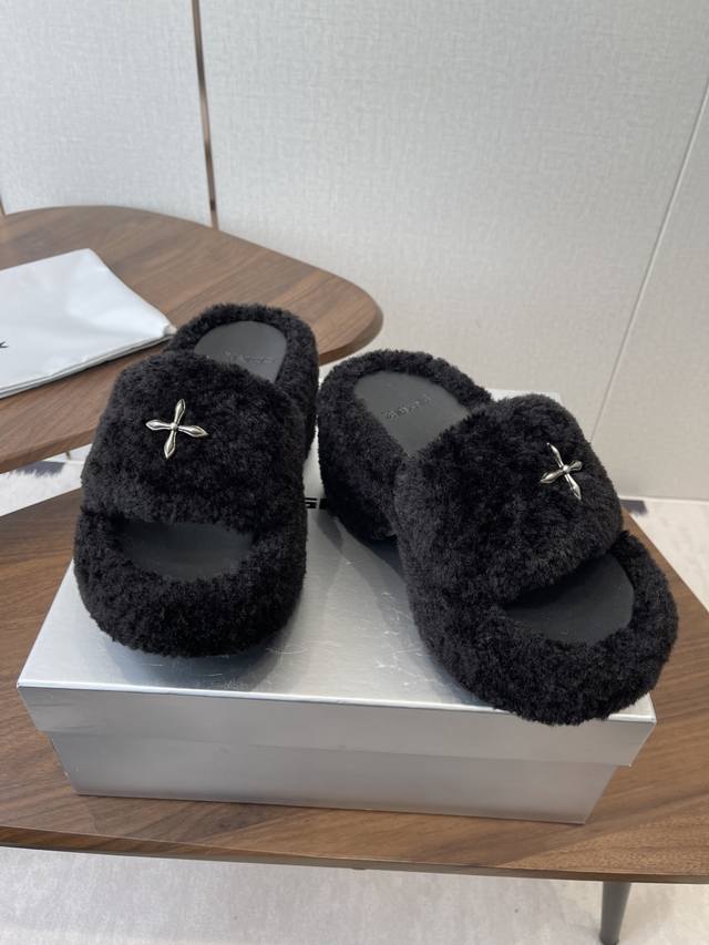 Smfk 25Ss 秋冬 新品 厚底 毛毛拖鞋 DDD 有点野性有点个性,这一季的Smfk真的让人心动不已,毛拖简直直击内心!超级炫酷,家人们沙漠战神快Get起来 DDD 鞋面采用冰岛毛,网布内里,不磨脚软糯舒适、定制原版五金扣,开模防滑十字底 DDD Size:35-40 40订做不退换 DDD