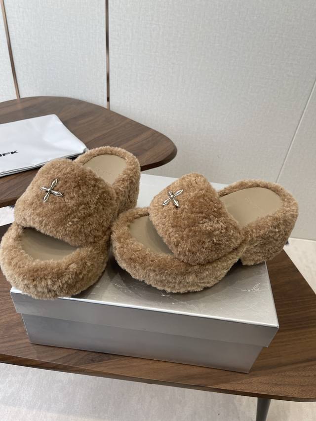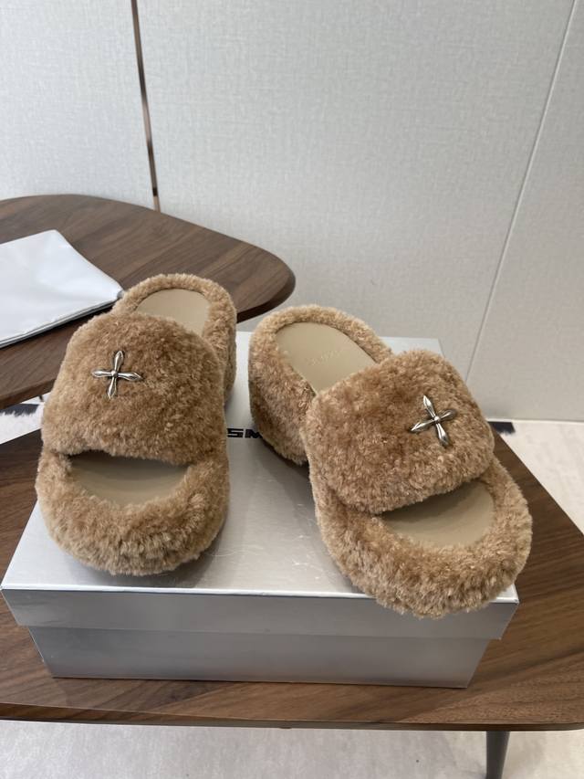 Smfk 25Ss 秋冬 新品 厚底 毛毛拖鞋 DDD 有点野性有点个性,这一季的Smfk真的让人心动不已,毛拖简直直击内心!超级炫酷,家人们沙漠战神快Get起来 DDD 鞋面采用冰岛毛,网布内里,不磨脚软糯舒适、定制原版五金扣,开模防滑十字底 DDD Size:35-40 40订做不退换 DDD