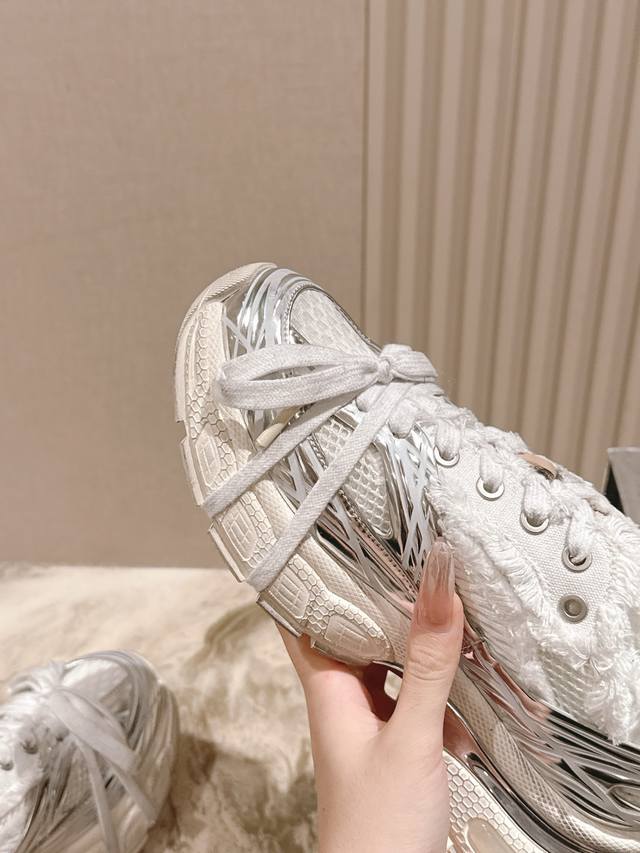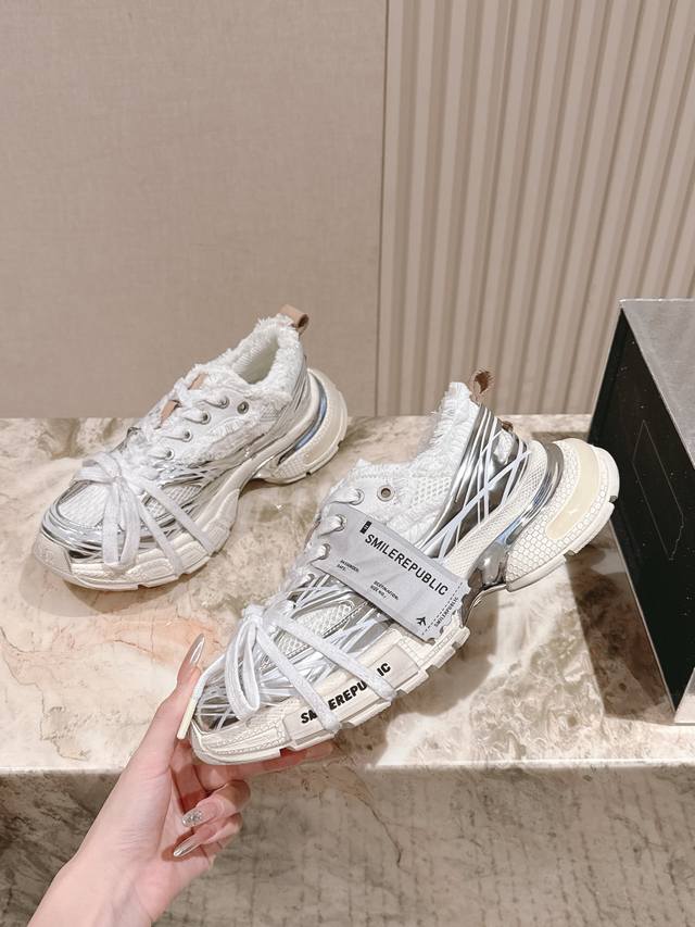 #隐藏款低帮可替换开口笑厚底休闲帆布老爹鞋 鞋面水洗帆布精致原版材料,内里牛皮~开模定制组合大底 解构风格 笑脸刺绣 大别针配件 鞋头感光字母 细节满满 上脚无敌好看 增高还显腿细