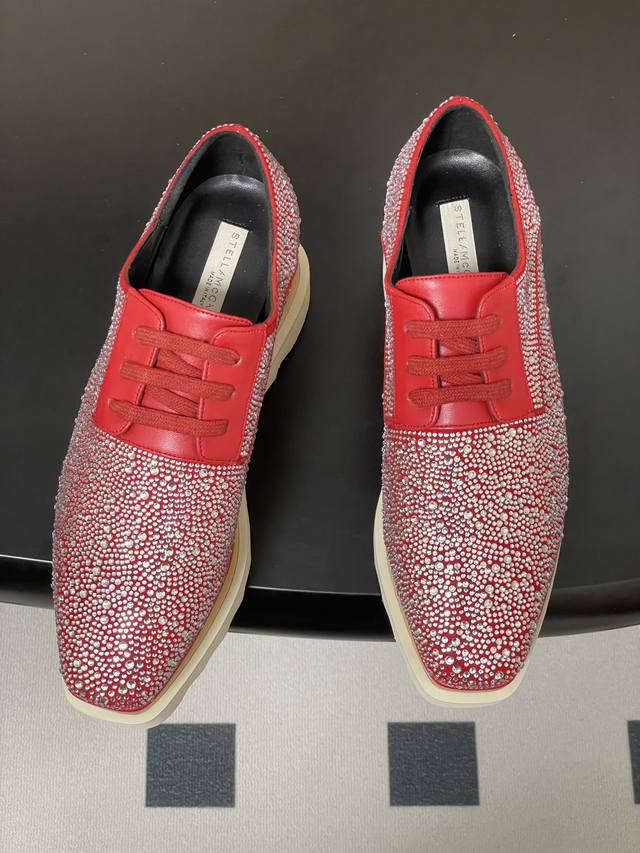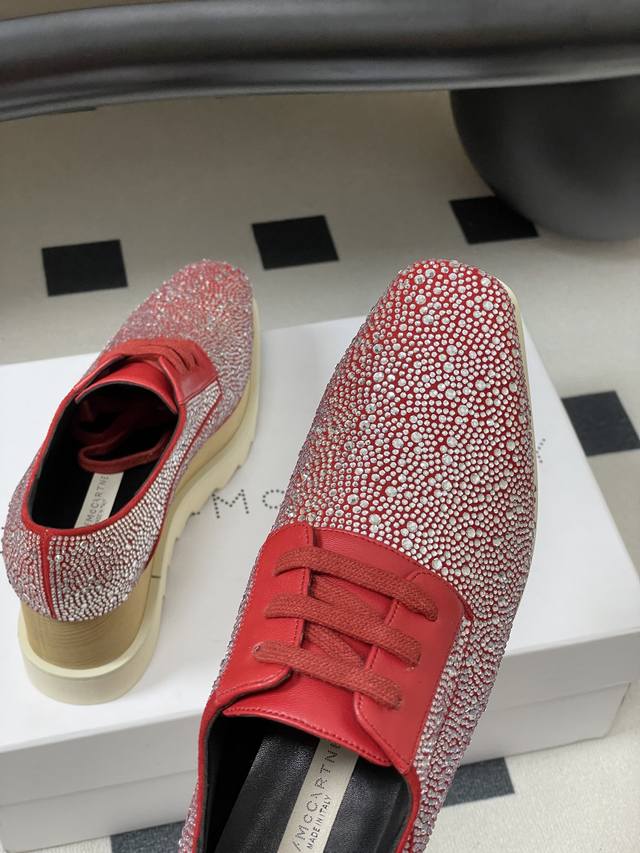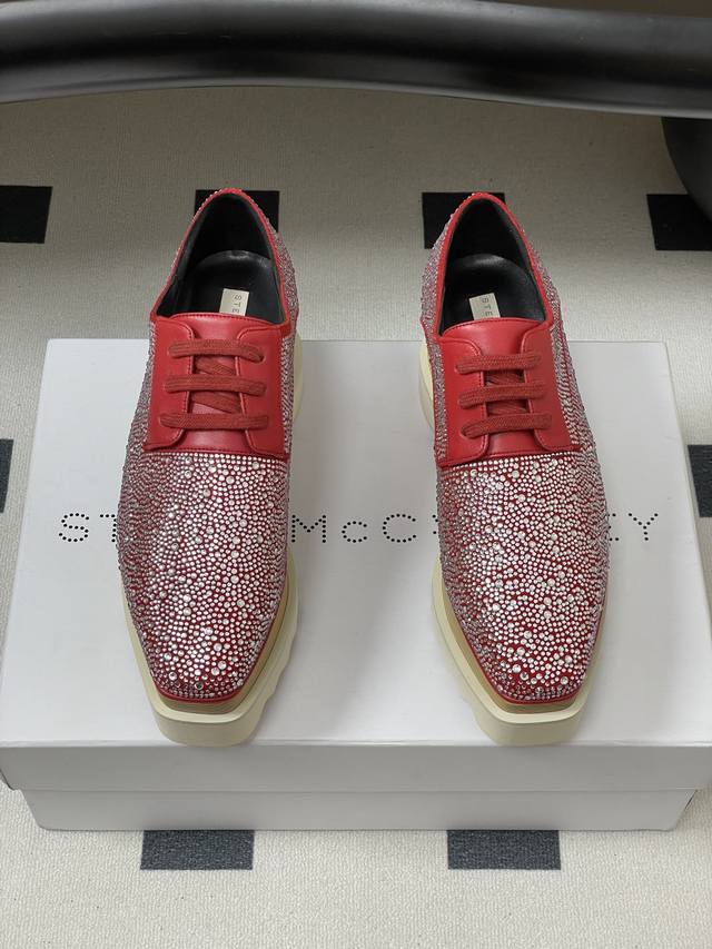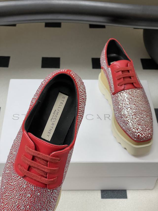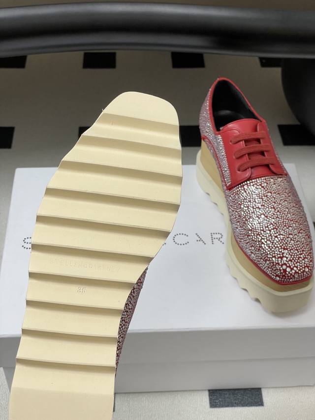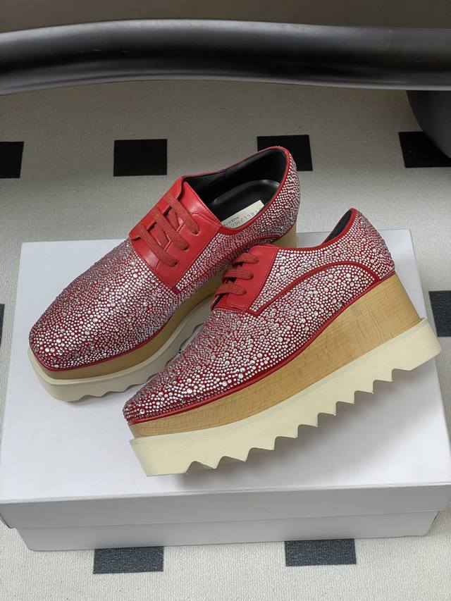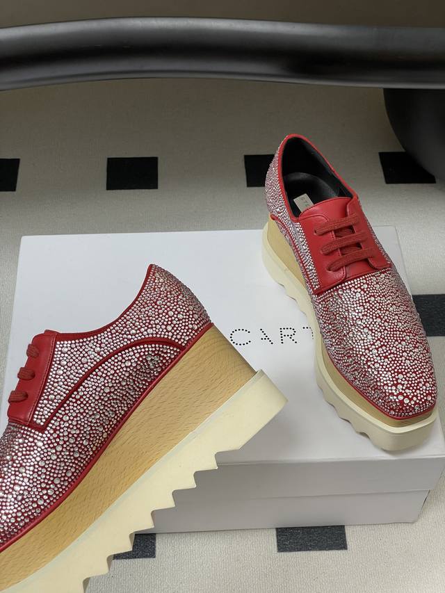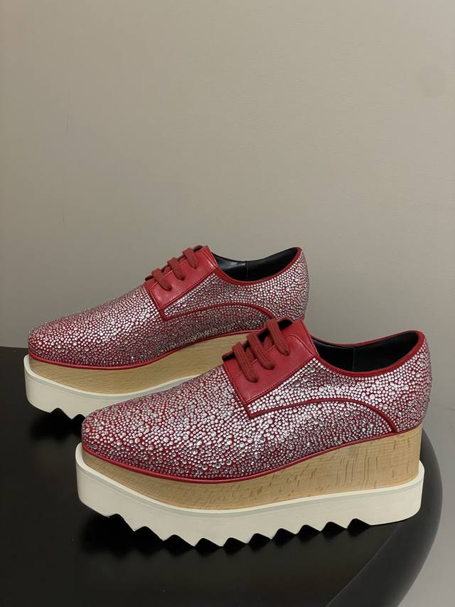 Stella Mccartney 原版实木底星星松糕鞋钻面厚底增高乐福鞋