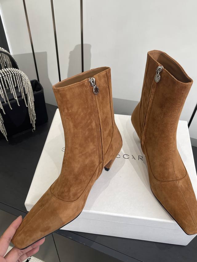 Stella Mccartney 斯特拉麦卡托尼 来自英国的奢侈品牌 品牌的设计风格主要以英式摇滚和甜蜜浪漫为主,展现出女性独有的优雅和魅力,鞋面将防水布和牛反绒融合在一起,打造出不一样的风格,立显大长腿! 面料:进口摔纹牛油皮 内里:羊皮 大底:意大利真皮大底 码数:35-40 40订做