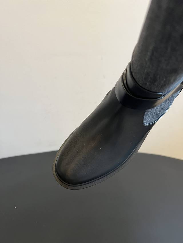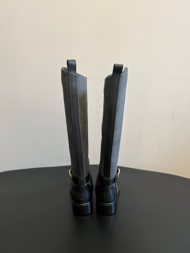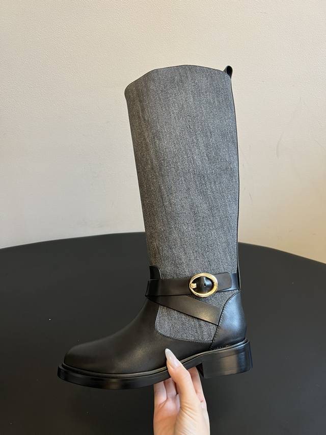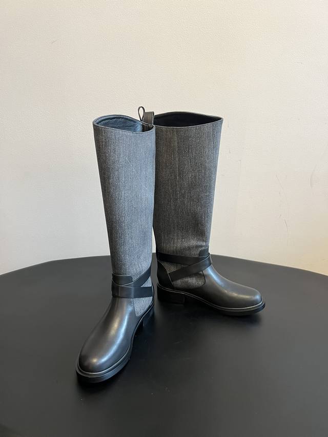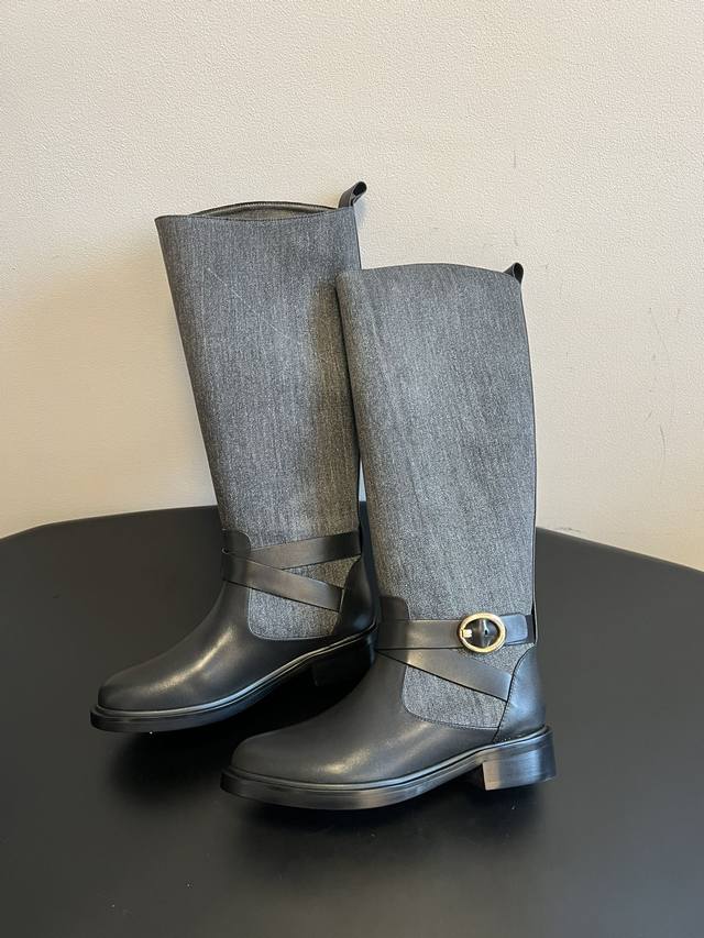Stuart Weitzma* Sw 秋冬新款拼接风骑士靴 DDD 皮革部分质感细腻,织物和麂皮材质则增加了鞋子的质感多样性。靴身带有金属扣环与皮带装饰,为整体造型增添了复古与时尚感,提升了鞋子的辨识度。 靴筒顶部有小提环设计,方便穿脱。 DDD 整体风格偏向复古英伦风,既适合日常休闲穿搭,也能打造出干练的通勤造型。采用低跟平底设计,保证了穿着的舒适性,同时也增强了鞋子的实用性,适合长时间行走。 DDD 材质:小牛皮 丝光牛反 水洗牛仔布绒 DDD 内里:羊皮 DDD 大底:橡胶大底 DDD 增高:4Cm