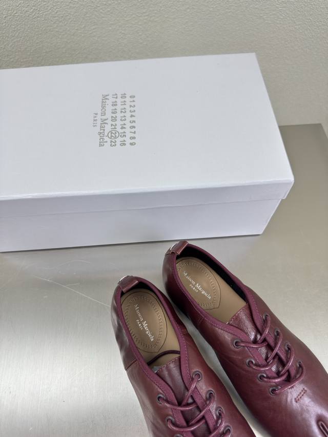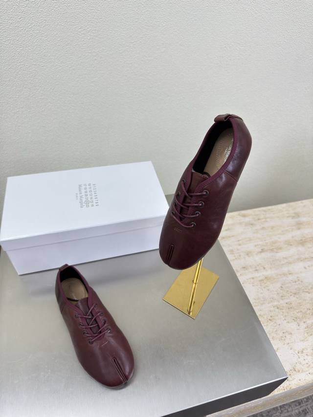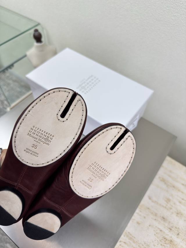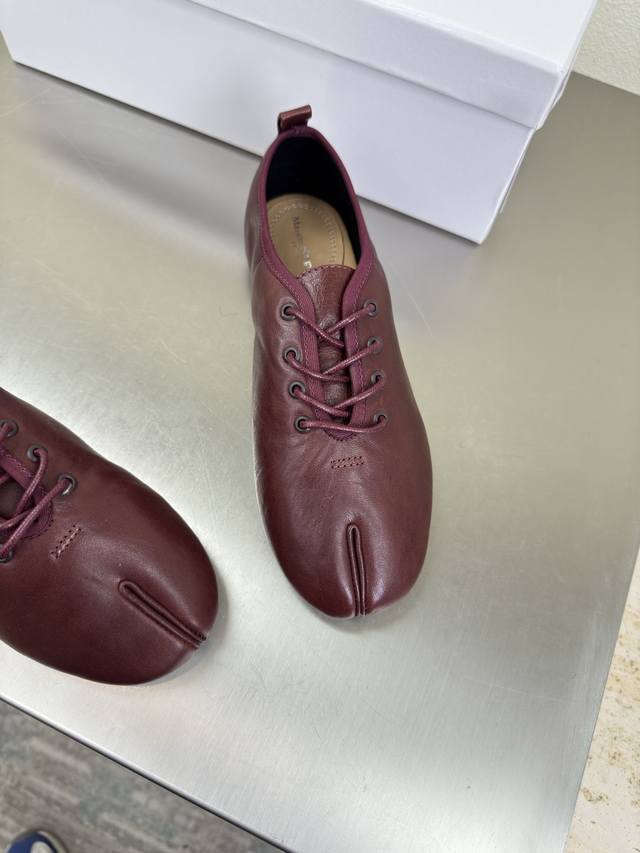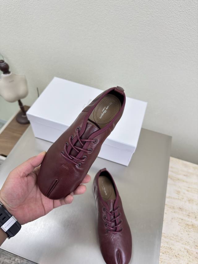 Tabi 分趾 后空鞋 Mm6 Maison Margiela DDD 酒红色植揉牛皮 DDD 大热时尚风格 DDD 酒红色 DDD Mm6 Maison Margiela的实验性从功能主义的解构美学出发,意想不到的玩味和前卫演绎,多变的简约风格剪裁,呈现创意无比的时装实验造型。 DDD 真皮大底设计 高丝光牛反绒 舒服细腻 DDD 水染牛皮里 皮里 高端对版 DDD 反叛又低调的Mm6 Maison Marqiela再出新款,以实用主义为设计核心的时髦鞋履。 DDD 前卫的设计与主线的Tabi分趾造型设