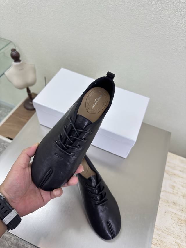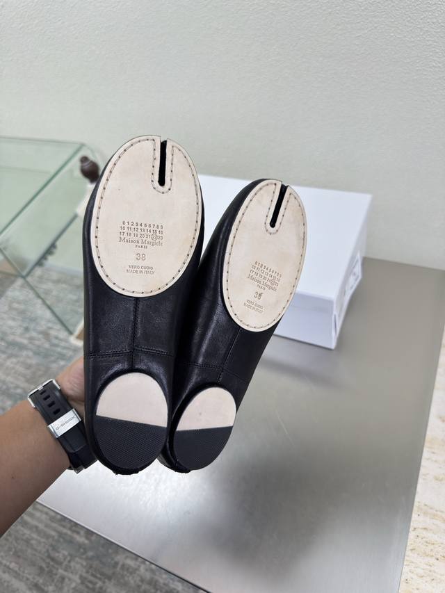 Tabi 分趾 后空鞋 Mm6 Maison Margiela DDD 黑色植揉牛皮 DDD 大热时尚风格 DDD 酒红色 DDD Mm6 Maison Margiela的实验性从功能主义的解构美学出发,意想不到的玩味和前卫演绎,多变的简约风格剪裁,呈现创意无比的时装实验造型。 DDD 真皮大底设计 高丝光牛反绒 舒服细腻 DDD 水染牛皮里 皮里 高端对版 DDD 反叛又低调的Mm6 Maison Marqiela再出新款,以实用主义为设计核心的时髦鞋履。 DDD 前卫的设计与主线的Tabi分趾造型设计