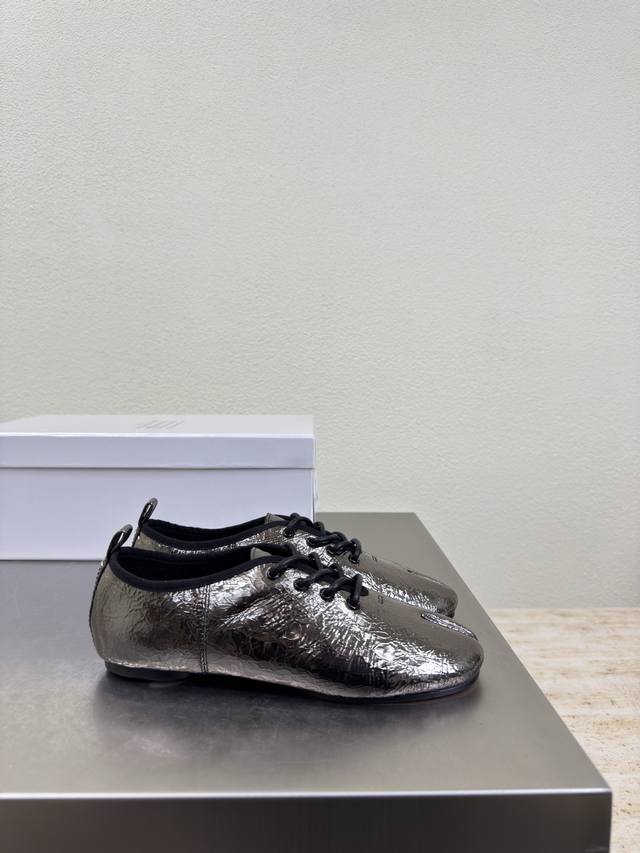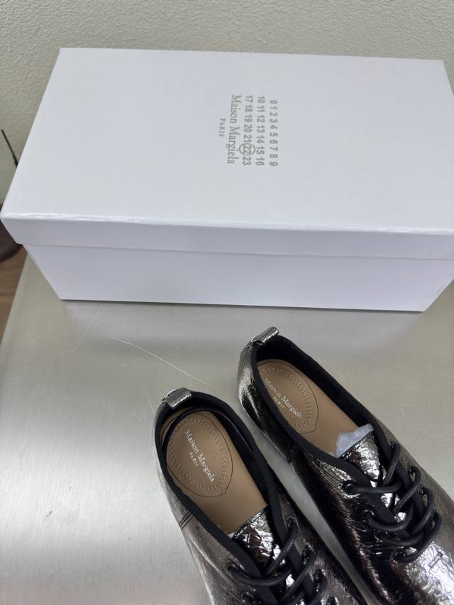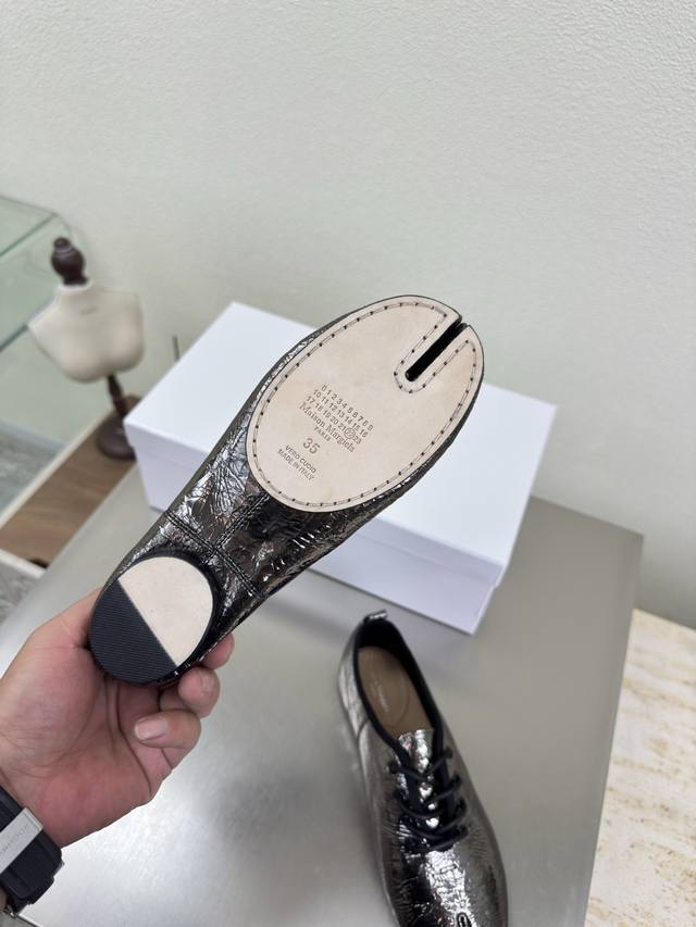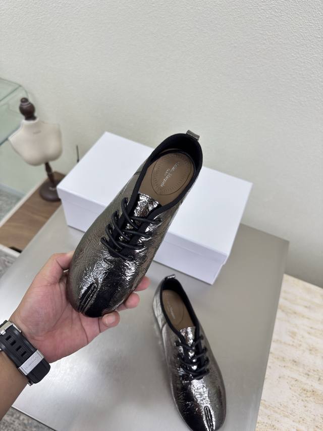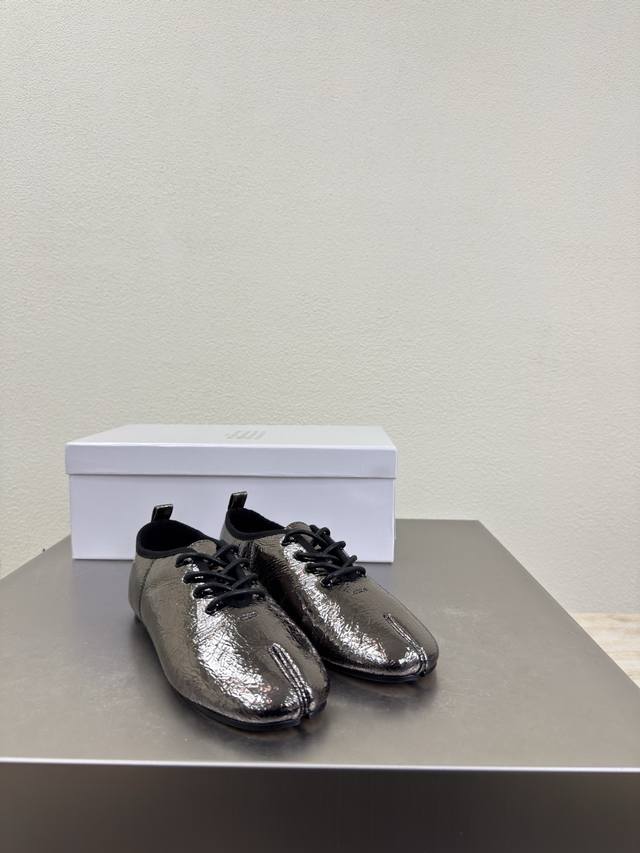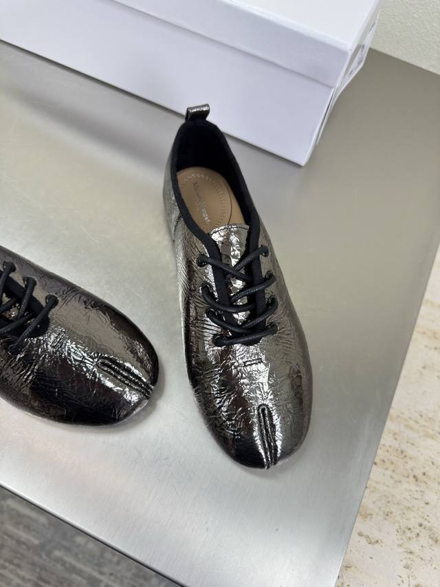 Tabi 分趾 后空鞋 Mm6 Maison Margiela DDD 黑银色 金属牛皮 DDD 大热时尚风格 DDD 黑银 DDD Mm6 Maison Margiela的实验性从功能主义的解构美学出发,意想不到的玩味和前卫演绎,多变的简约风格剪裁,呈现创意无比的时装实验造型。 DDD 真皮大底设计 高丝光牛反绒 舒服细腻 DDD 水染牛皮里 皮里 高端对版 DDD 反叛又低调的Mm6 Maison Marqiela再出新款,以实用主义为设计核心的时髦鞋履。 DDD 前卫的设计与主线的Tabi分趾造型设