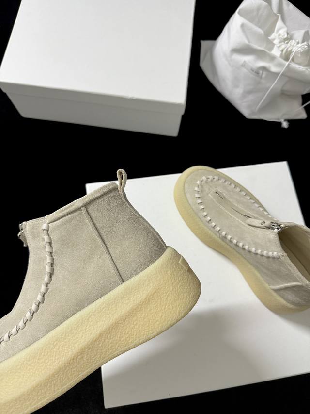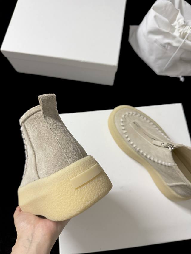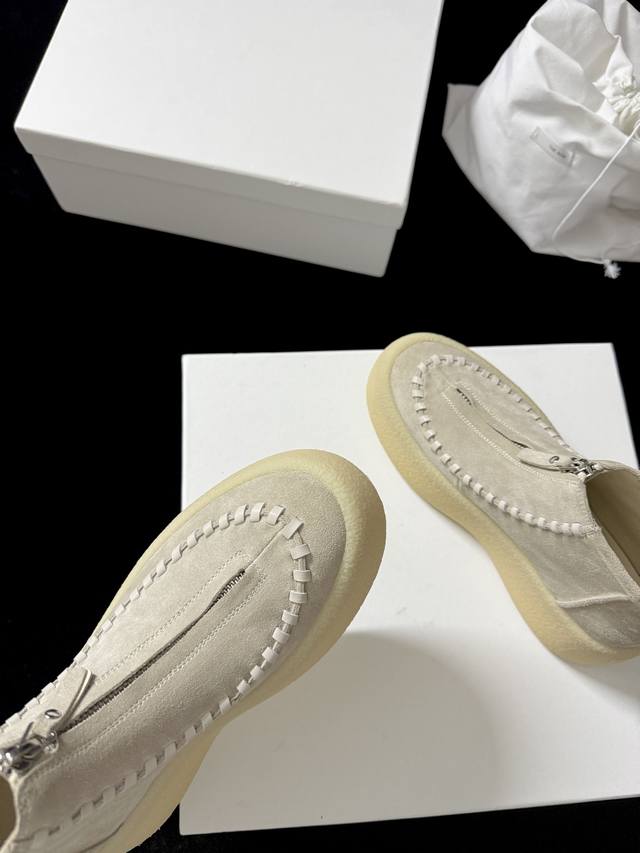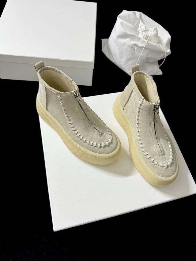 The Ro* 新品 代购级别 太懂时髦精了 麂皮质感高级 前拉链设计利落又吸睛 厚底还能悄悄**~ 不管是搭休闲装还是轻熟风 都能轻松出彩 妥妥的穿搭“心机”