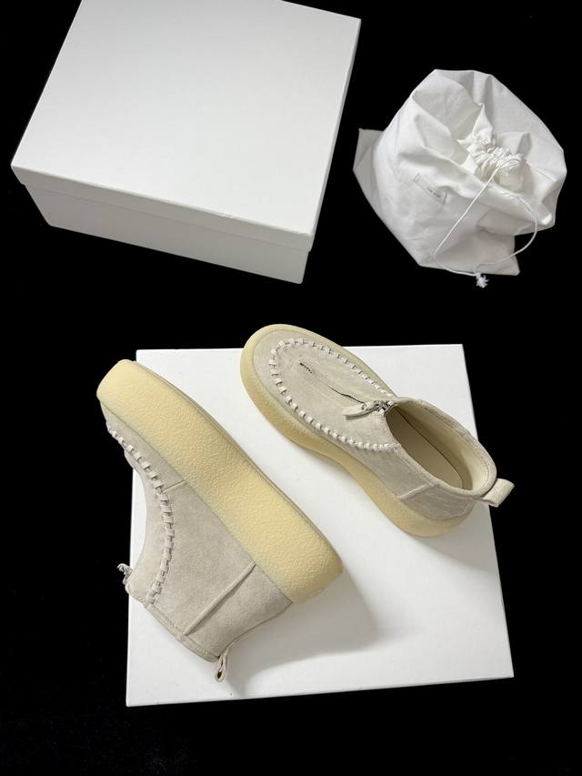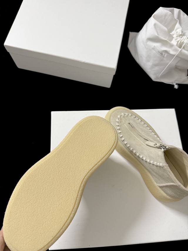 The Ro* 新品 代购级别 太懂时髦精了 麂皮质感高级 前拉链设计利落又吸睛 厚底还能悄悄**~ 不管是搭休闲装还是轻熟风 都能轻松出彩 妥妥的穿搭“心机”单品~ 鞋面进口麂皮 内里进口羊皮 Zp复刻大底 35-39 40.41定