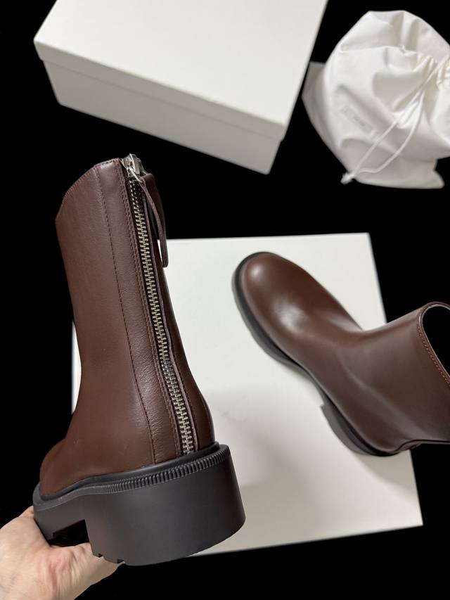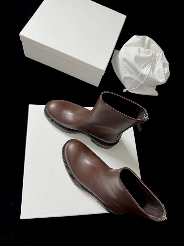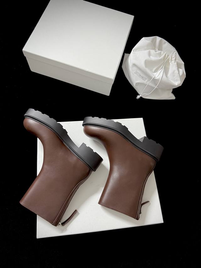The Ro* 新品 极简风 简直是时髦密码 柔滑皮革质感拉满 后拉链设计利落又别致 厚底还能悄悄增高~ 不管是搭配裙装还是裤装 都能轻松打造出高级感满满的造型
