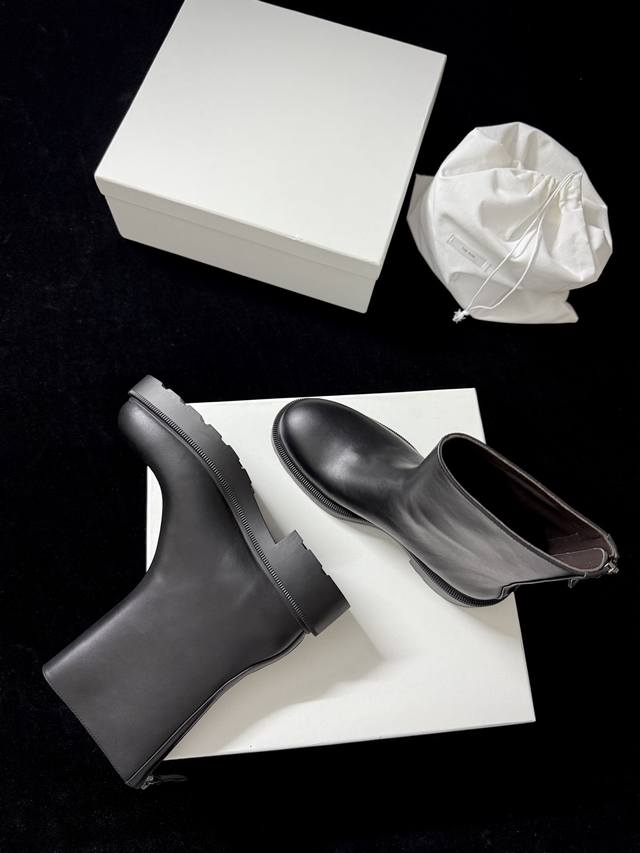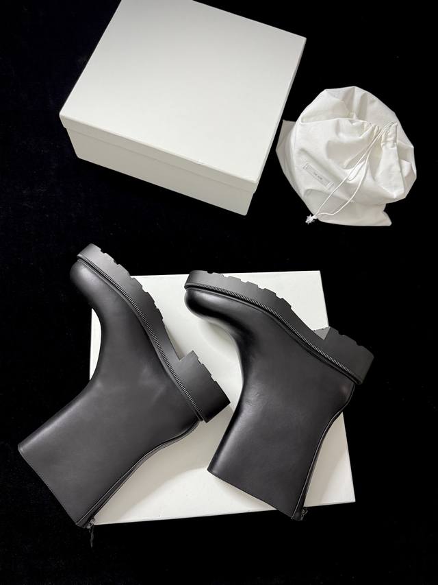 / The Ro* 新品 极简风 简直是时髦密码 柔滑皮革质感拉满 后拉链设计利落又别致 厚底还能悄悄**~ 不管是搭配裙装还是裤装 都能轻松打造出高级感满满的造型