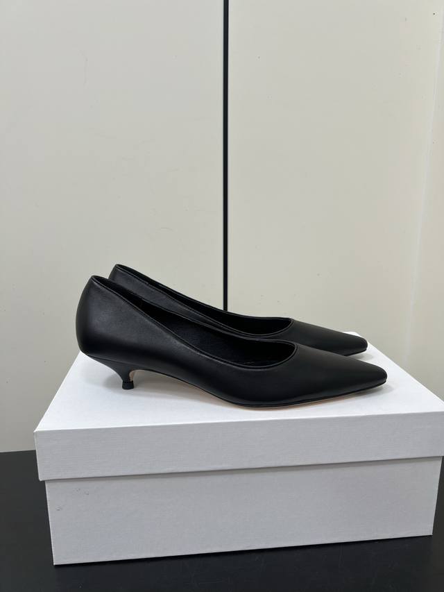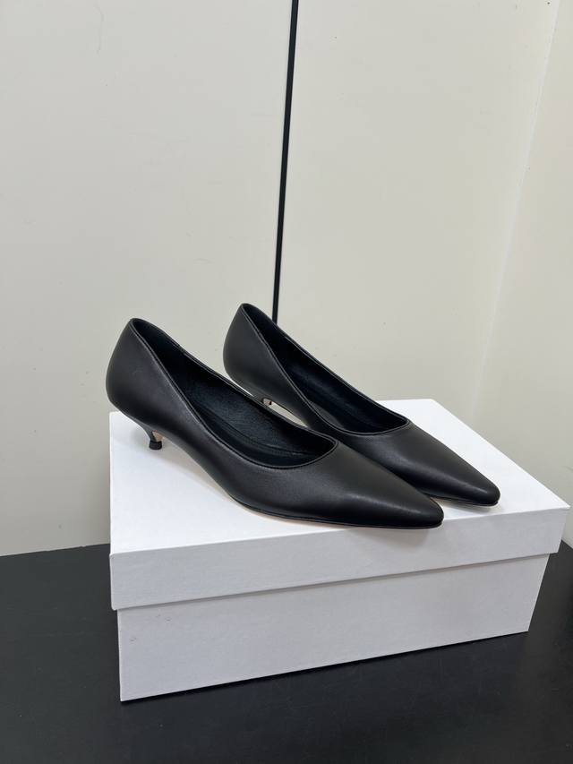 The Row法式复古简易风尖头奶奶猫跟单鞋 ! 复古气质女王 整个鞋型简约大气,很干净利落又好搭配!日常穿搭、约会聚会等也能轻松驾驭! 穿上很显脚瘦,又在视觉上拉腿长!这质感,任谁看了都高呼Yyds由内到外散发着贵气感~光泽感拉满!而且舒适又耐穿!穿着轻便舒服,走路完全不累脚!日常通勤、逛街等统统都能Hold得住! 鞋面采用头层牛皮 开边珠牛皮 内里垫脚羊皮 意大利进口注塑真皮大底 跟高:3.5Cm 码数:35-40 40定做不退换 配原版包装