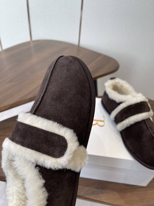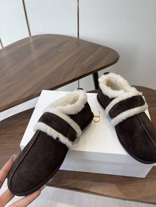 The Row皮毛一体羊毛靴,魔术贴设计简单又方便,搭配也好看!整个鞋子非常柔软,好穿不磨脚。各大博主纷纷在穿,简单设计乃是这个品牌一贯作风,迎来众人喜爱看着简单上脚起来却很好看 DDD 面料:原版定制进口胎牛绒,隐藏内增高2Cm活动乳胶鞋垫:内里羊毛,大底:Tpu模具大底 DDD 延续了一贯极简风格,鞋身极其轻便贴肤,整双鞋子看似简单其实工艺很难,采用全皮套包制作工艺,老师傅纯手工缝制作,超级废料,上脚非常舒适柔软亲肤,脚感方面完全不可担心,好穿是必须的,穿若无穿的上脚体验 DDD Size:35-41