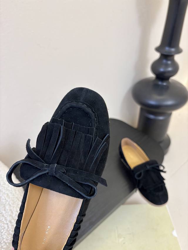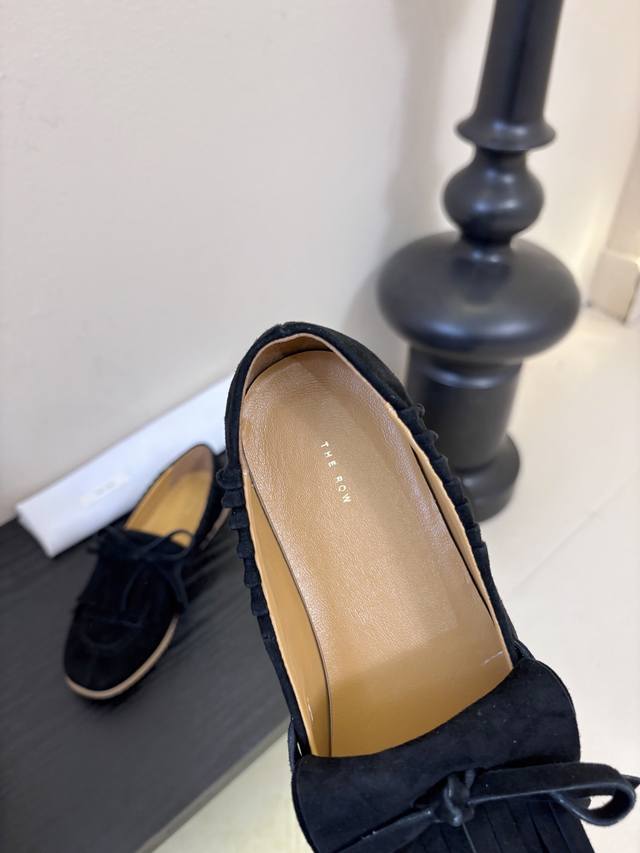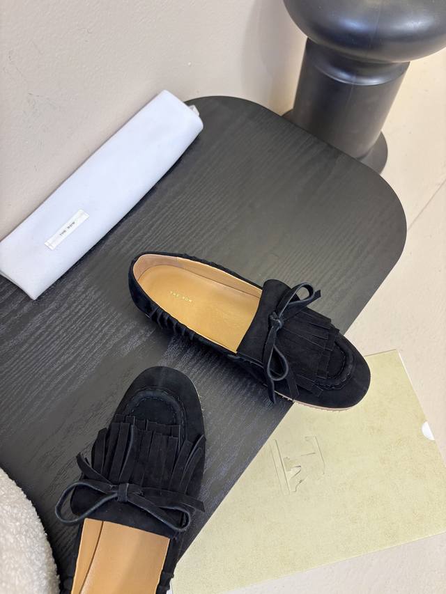 The Row蝴蝶结流苏一脚蹬乐福鞋 Ddd 第一眼看到这个鞋子就爱上了,看着不起眼但却让人越看越喜欢,简单又高级,带点复古味随意搭配都好看!各大网红博主都在穿它,上脚起来实在太好看了,整个鞋子非常非常柔软,好穿不磨脚。以成为经典又实用的一款单鞋还可以踩跟当拖鞋一鞋两用一举两得 Ddd 鞋面:进口羊京 Ddd 内里垫脚:牛皮 Ddd 大底:橡胶开模防滑大底 Ddd Size:35-39 40不退换 DDD