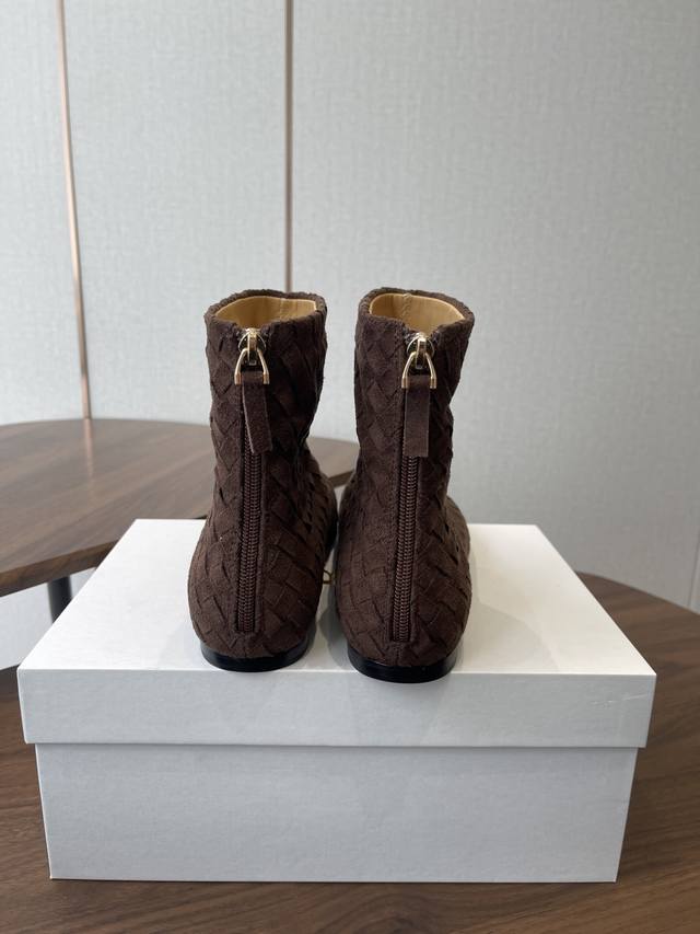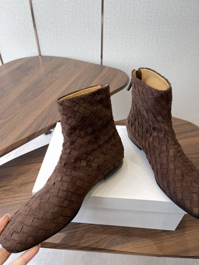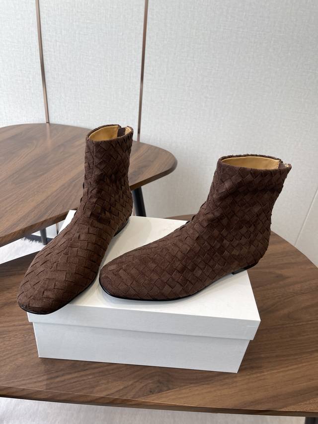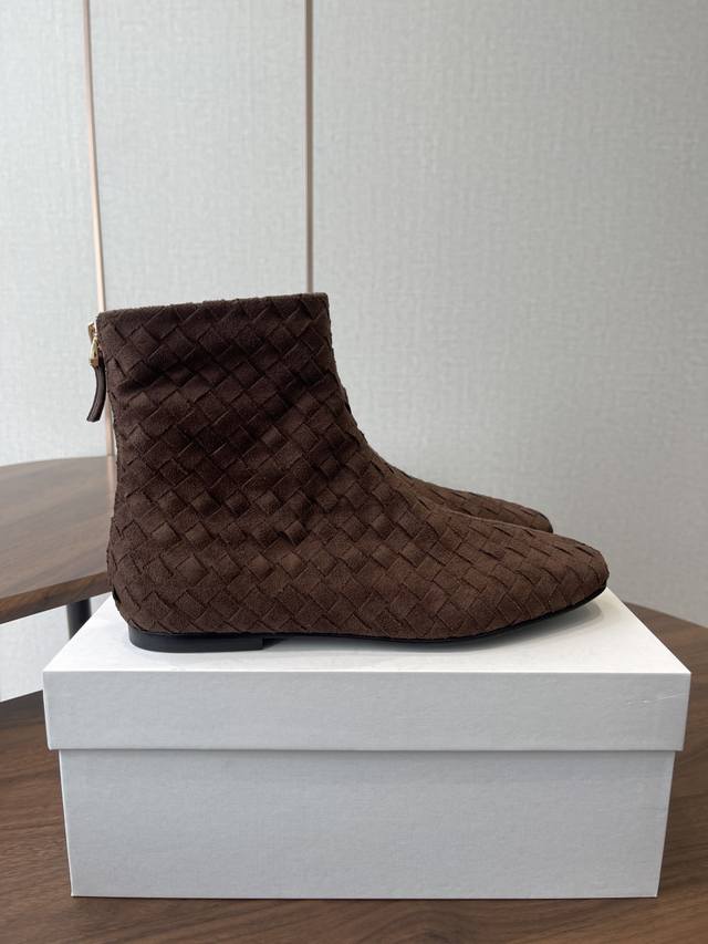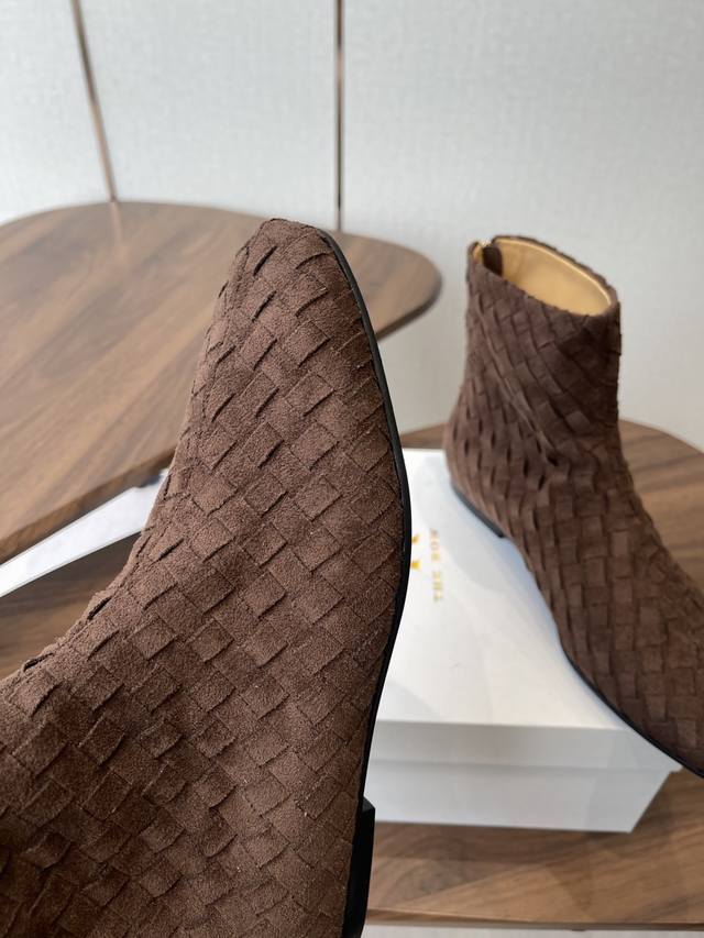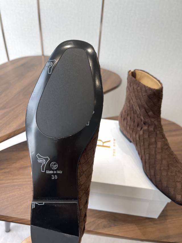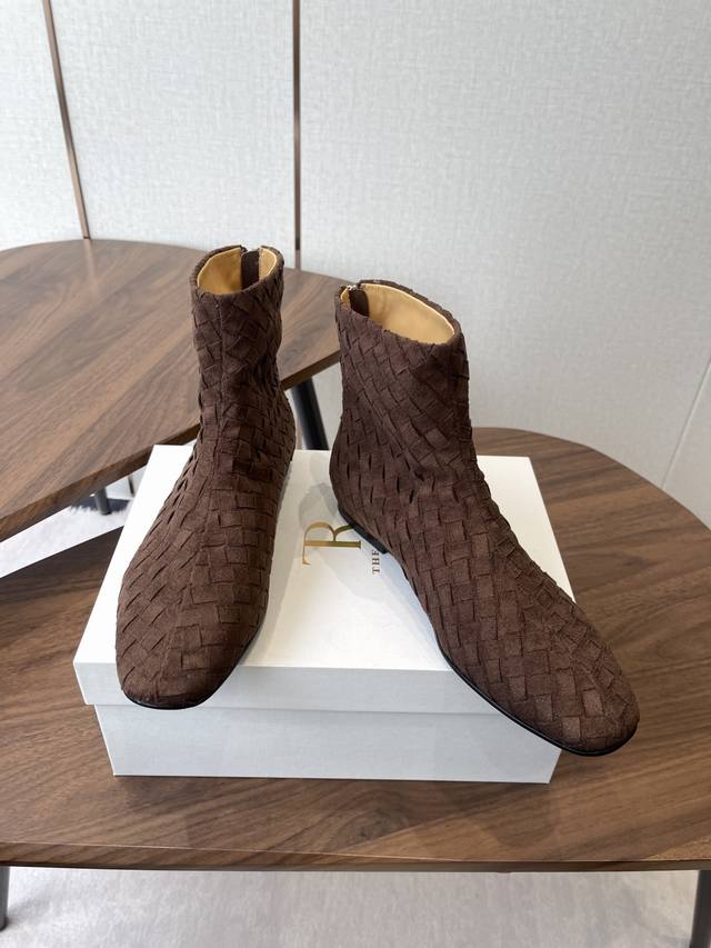 The Row 新款编织短靴 极简高级平底靴,麂皮皮超级柔软 爱不释手,独特风格,一眼爱上,Row就是永远这么受欢迎 手工编织鞋面水染牛皮内里 大底:注塑真皮大