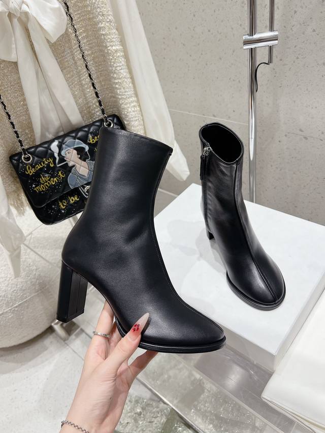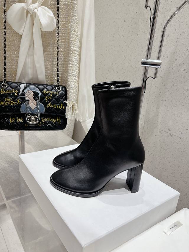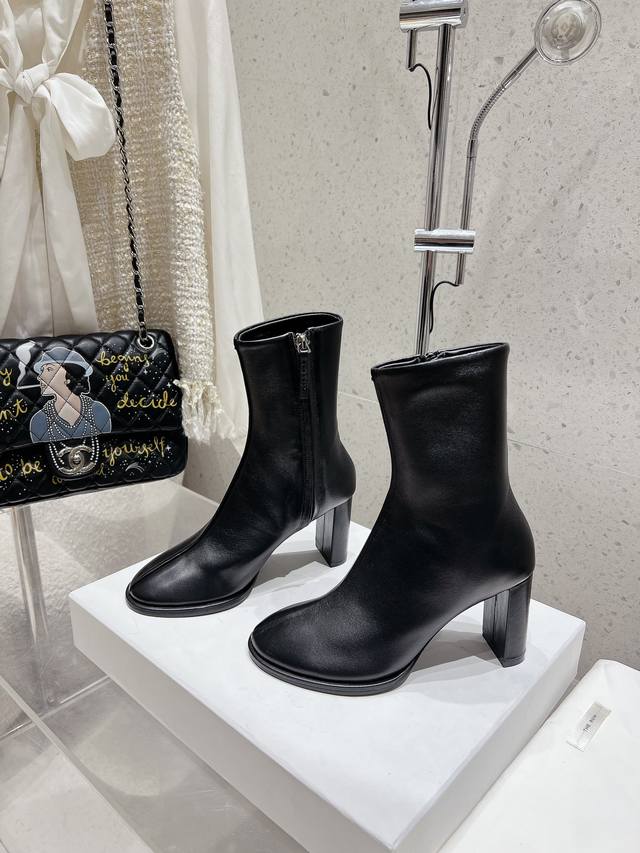 The Row 秋冬光面高跟短靴。原版购入 顶级还原。鞋面原版定制进口混种透染小羊皮超柔软绵羊皮内里垫脚。上脚超舒服超修脚。面料包边意大利透染真皮大底