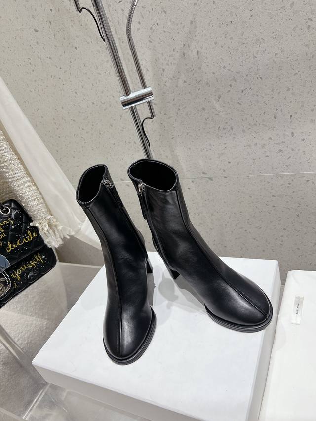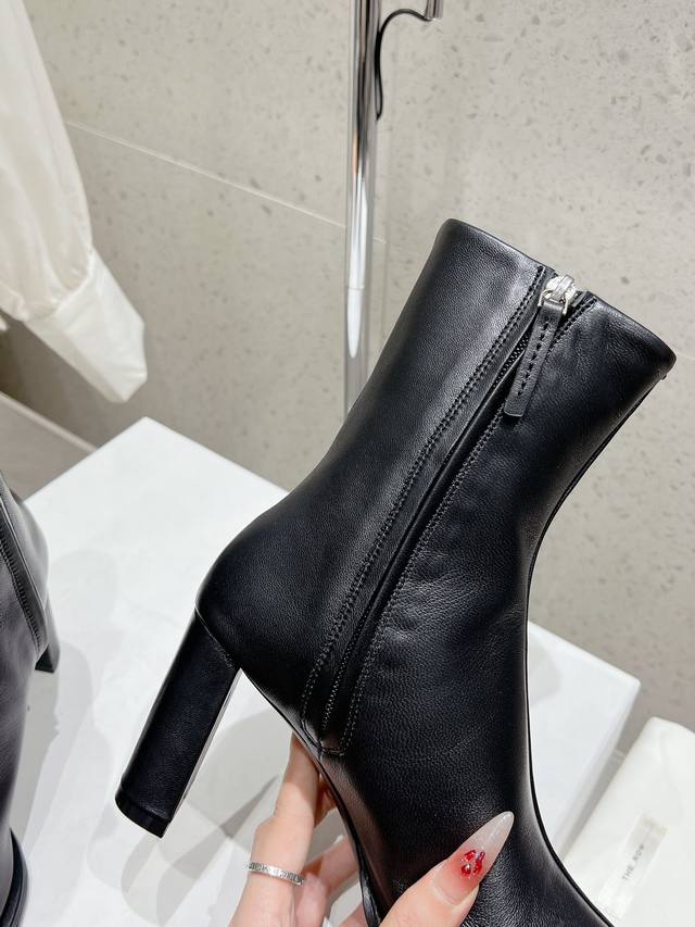 The Row 秋冬光面高跟短靴。原版购入 顶级还原。鞋面原版定制进口混种透染小羊皮超柔软绵羊皮内里垫脚。上脚超舒服超修脚。面料包边意大利透染真皮大底 原版配套