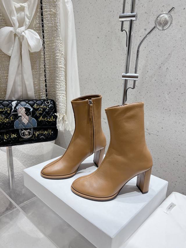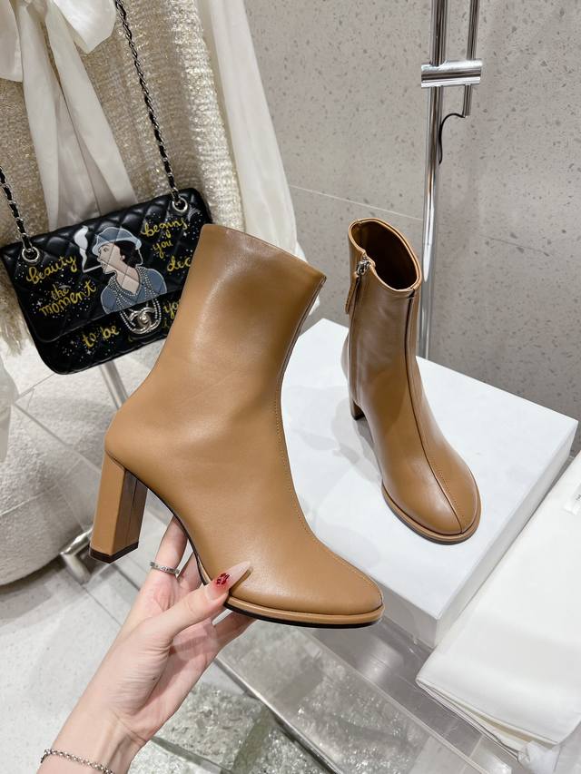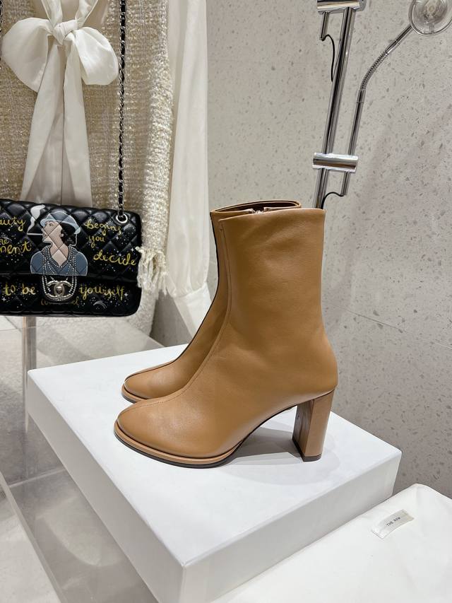 The Row 秋冬光面高跟短靴。原版购入 顶级还原。鞋面原版定制进口混种透染小羊皮超柔软绵羊皮内里垫脚。上脚超舒服超修脚。面料包边意大利透染真皮大底 原版配套