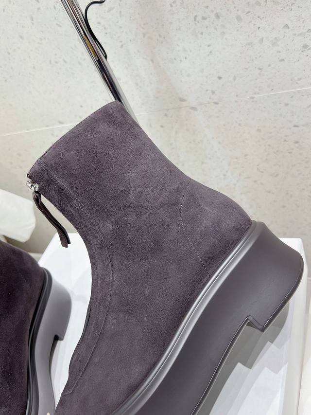 / The Row 秋冬新款中缝拉链经典厚底短靴。刘雯同款,超多明星示范原版购入 顶级还原。鞋面原版定制进口小牛皮超柔软混种羊皮内里垫脚。前拉链的设计,简约时髦!上