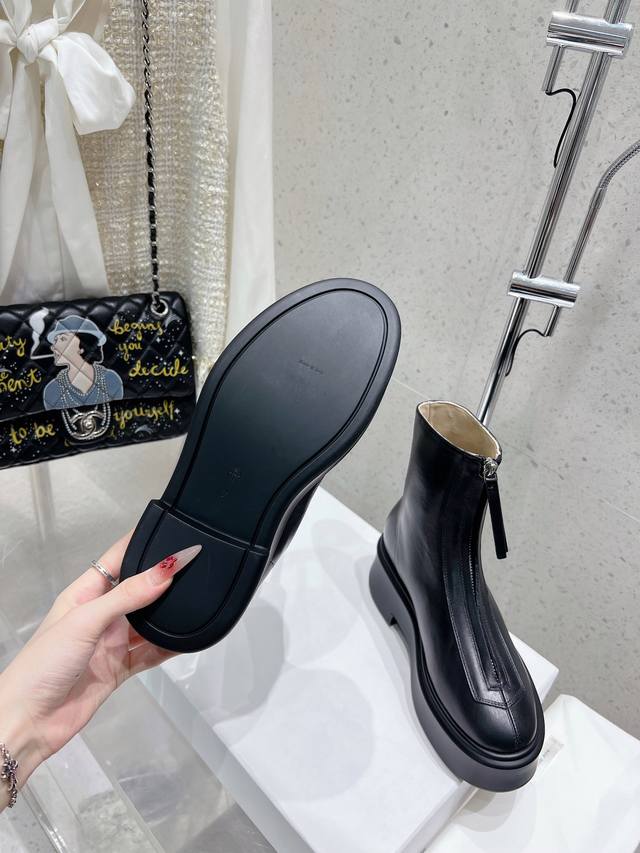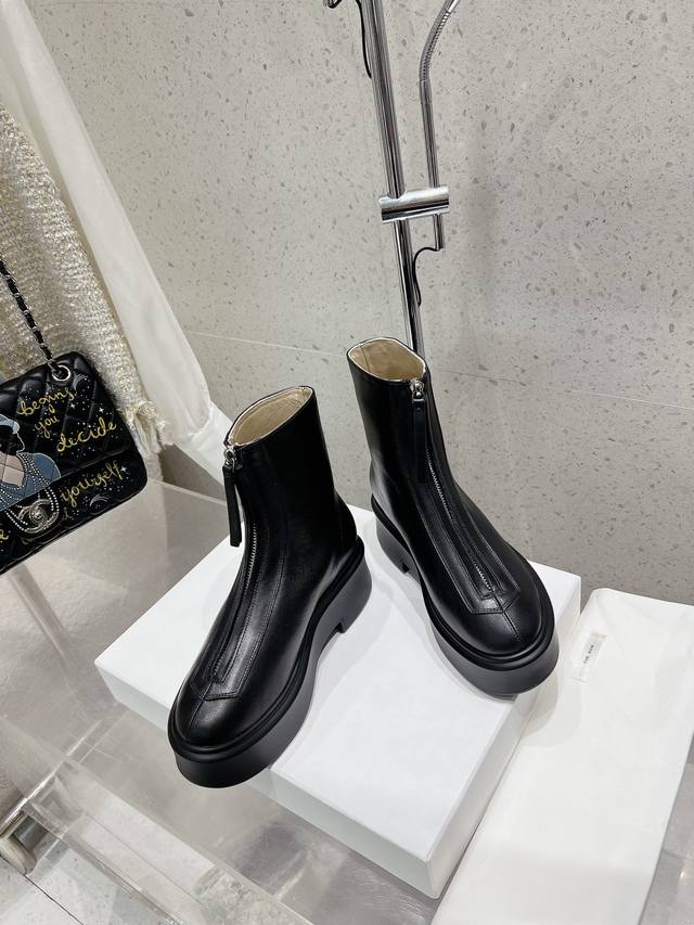 / The Row 秋冬新款中缝拉链经典厚底短靴。刘雯同款,超多明星示范原版购入 顶级还原。鞋面原版定制进口小牛皮超柔软混种羊皮内里垫脚。前拉链的设计,简约时髦!上
