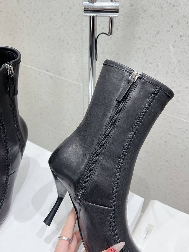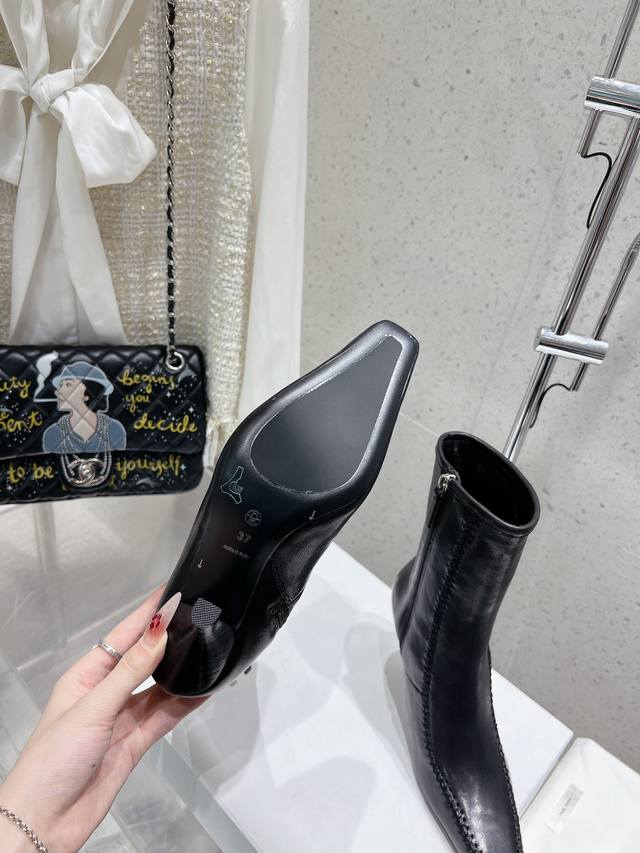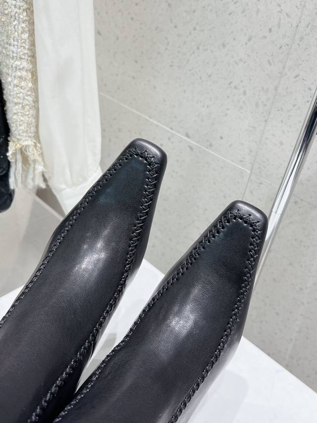 The Row 秋冬新款方头缝线侧拉链细跟短靴裸靴 跟高7.5Cm 筒高190Cm 小羊皮面料 内里绵羊里 原版真皮大底 码数:35-39码 34 40定做