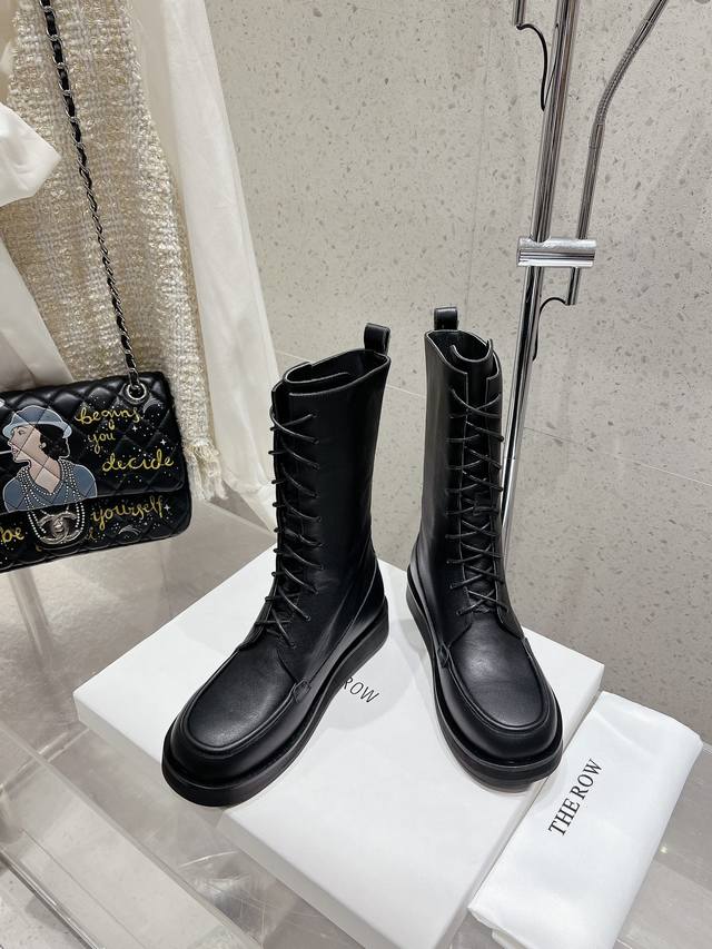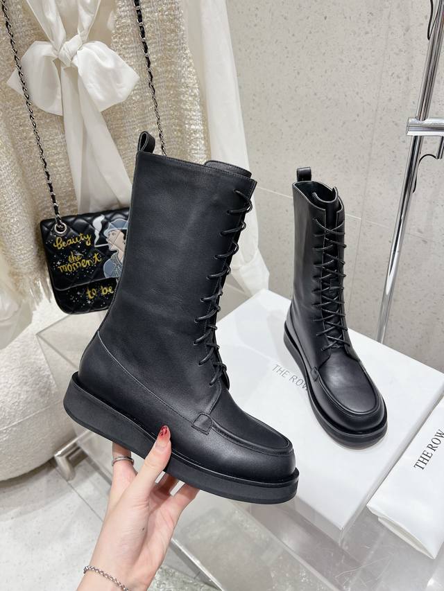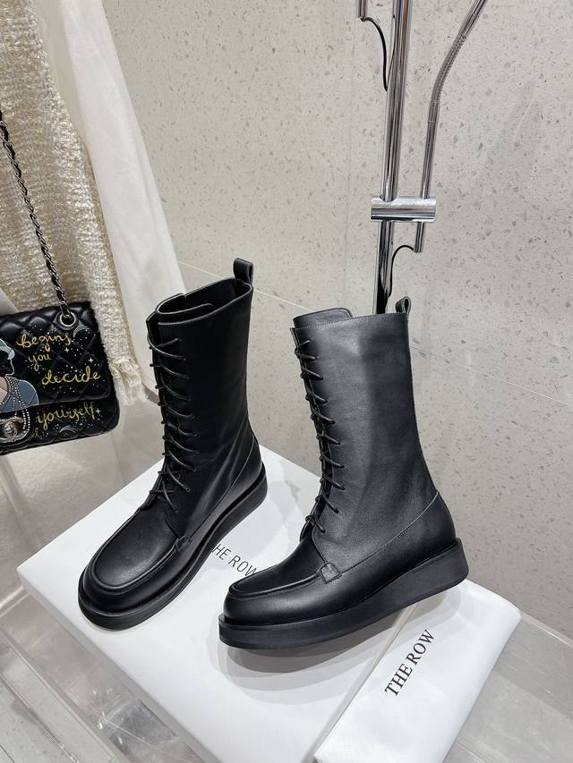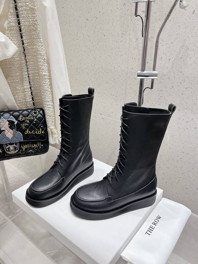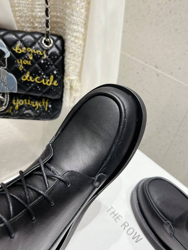 The Row 秋冬新款绑带厚底短靴 顶级还原。鞋面原版定制进口小牛皮超柔软混种羊皮内里垫脚。前绑带的设计 上脚超舒服超修脚 与原版一致很轻很软!原版配套。