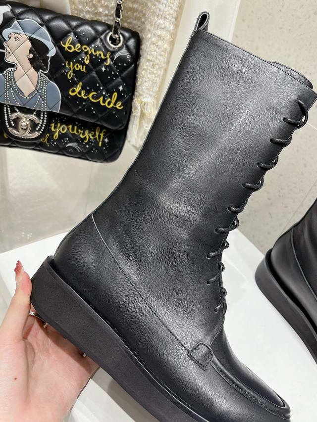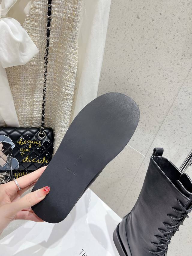 The Row 秋冬新款绑带厚底短靴 顶级还原。鞋面原版定制进口小牛皮超柔软混种羊皮内里垫脚。前绑带的设计 上脚超舒服超修脚 与原版一致很轻很软!原版配套。 码