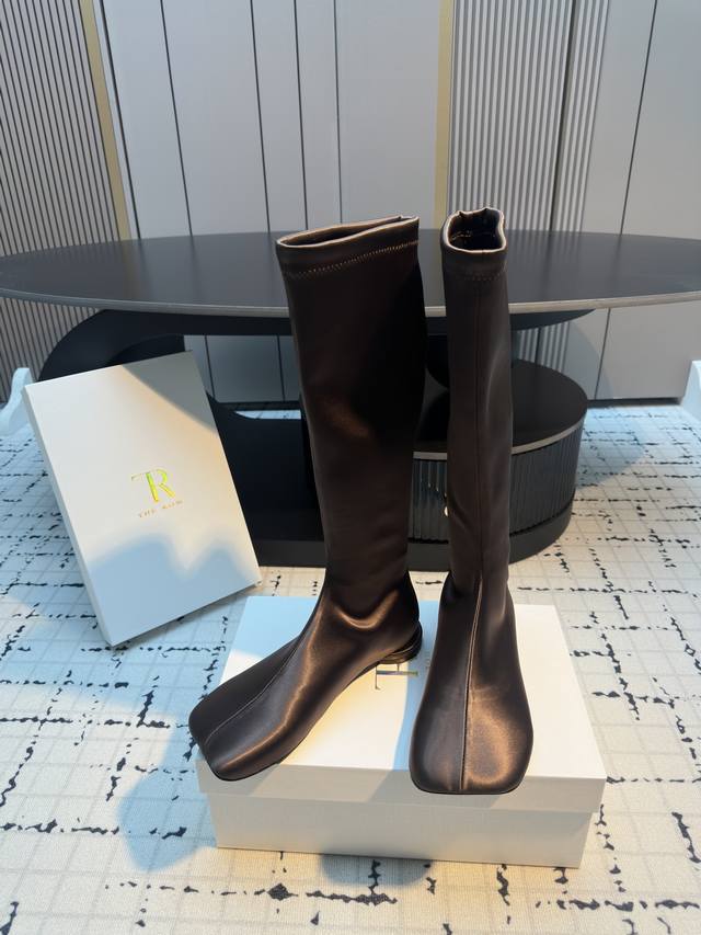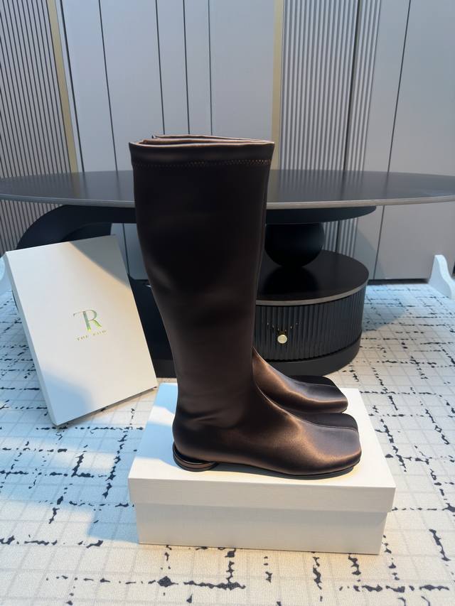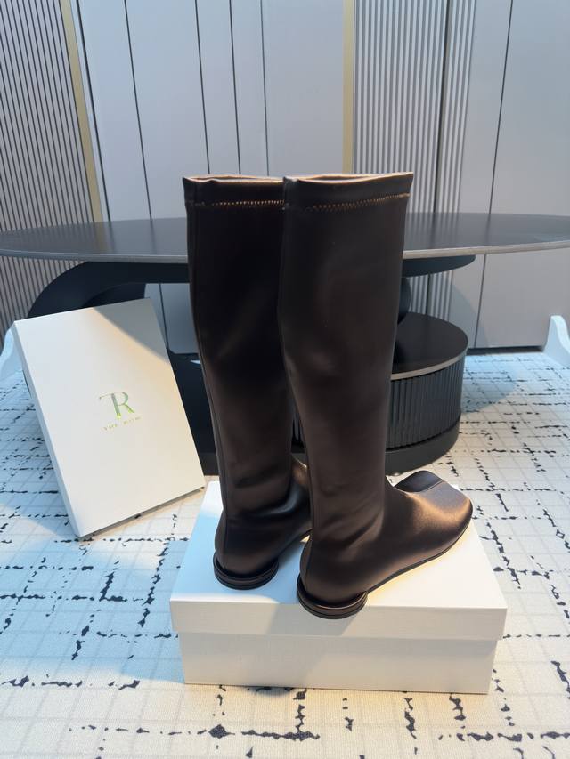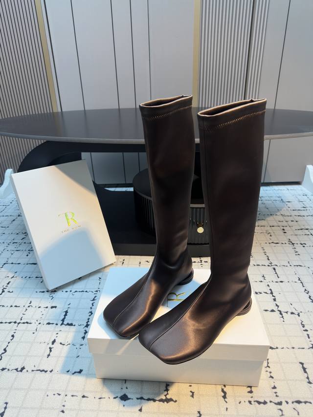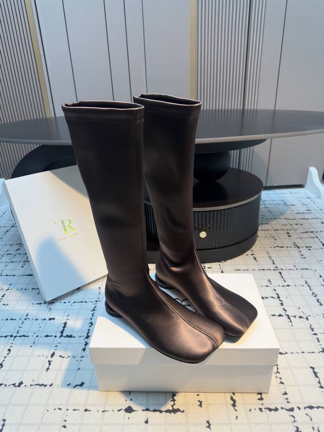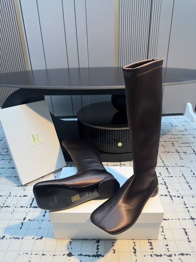 The Row 2025早秋全新设计款,用高定级羊皮自带细腻质感,上手是软到心尖的触感,上脚靠利落剪裁藏住肉感。特意做了独特设计方头+夸张圆跟的设计组合,既符合当下潮流动向,又能悄悄拉长腿部线条,搭配贴合腿型的弹力靴口,从通勤到约会都能搭,早秋氛围感直接拉满 DDD 面料:弹力贴膜羊皮、真丝绸缎 DDD 鞋底:意大利真皮底 DDD 内里:羊皮 DDD 跟高:1Cm DDD 筒高:15.5寸 38Cm DDD 码数:35 41 40.41定做不退不换 DDD