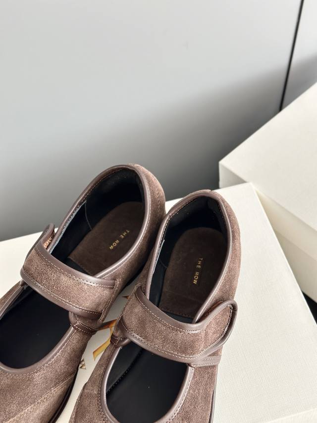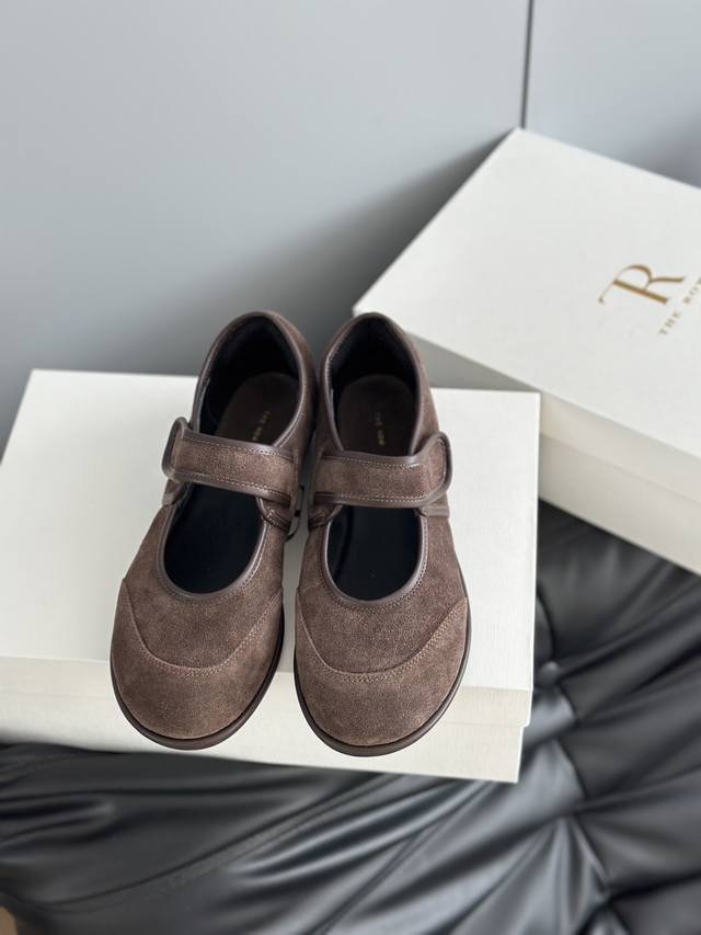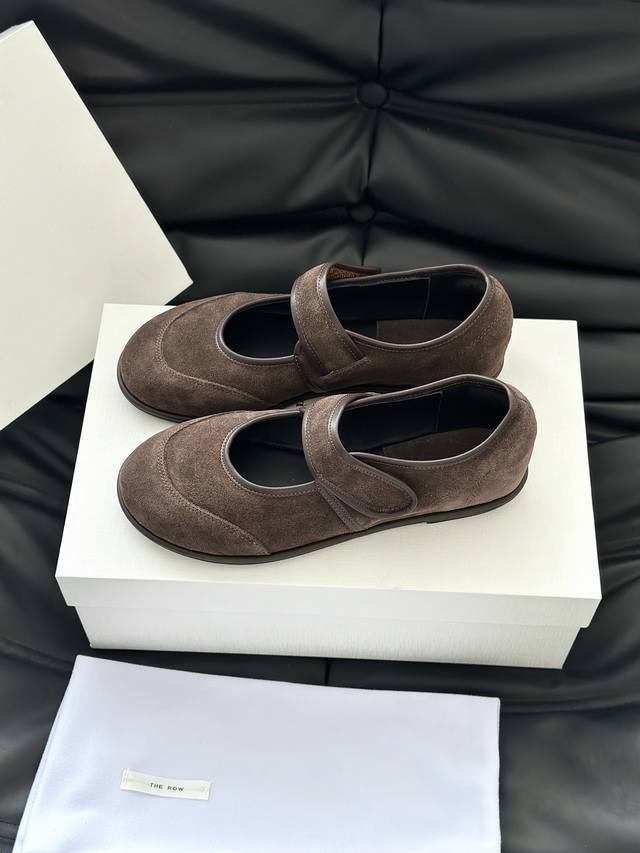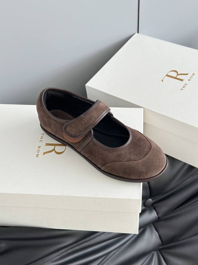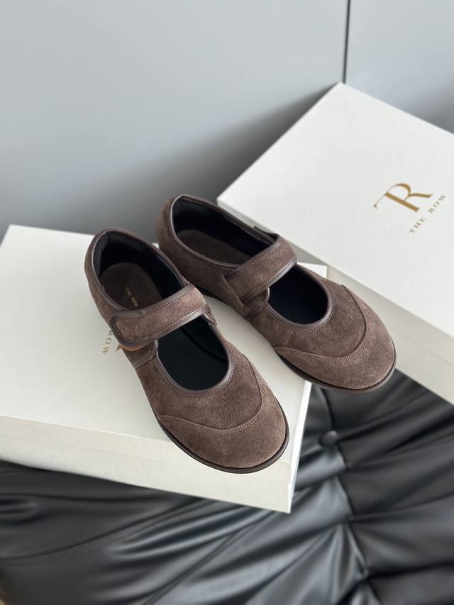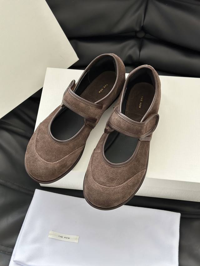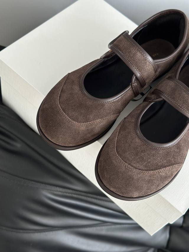 The Row 2025秋冬新款魔术贴玛丽珍单鞋奶奶鞋 简易复古中性风!非常舒服的平底鞋,极简设计理念,版型显瘦好穿颜值与实用性并存 鞋面采用原版牛反绒,内里垫