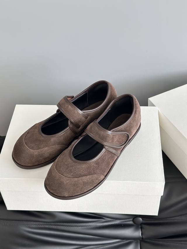 The Row 2025秋冬新款魔术贴玛丽珍单鞋奶奶鞋 DDD 简易复古中性风!非常舒服的平底鞋,极简设计理念,版型显瘦好穿颜值与实用性并存 DDD 鞋面采用原版牛反绒,内里垫脚羊皮,原版开模橡胶大底 DDD 码数:35 40 40定做不退不换 DDD