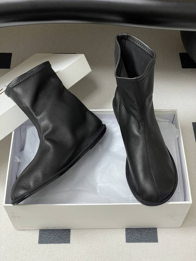 The Row 25早秋新款 Tr袜子弹力短靴超舒适极简风靴子看似极其简约,轻松写意的设计,但选材却极其奢华,采用顶级的进口弹力面打造鞋身,出色的柔软质感和楦型