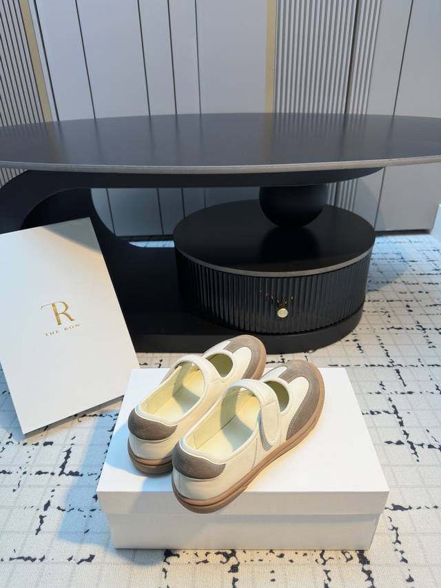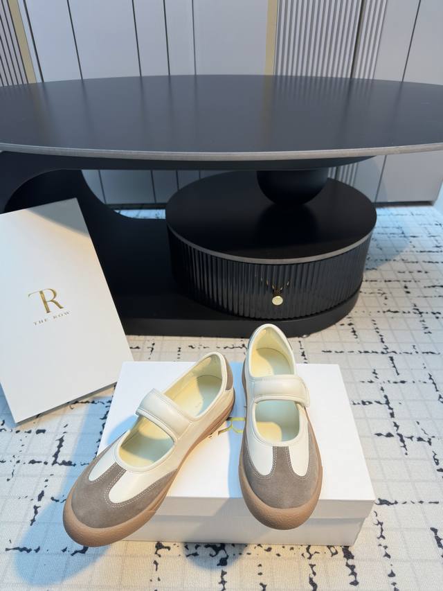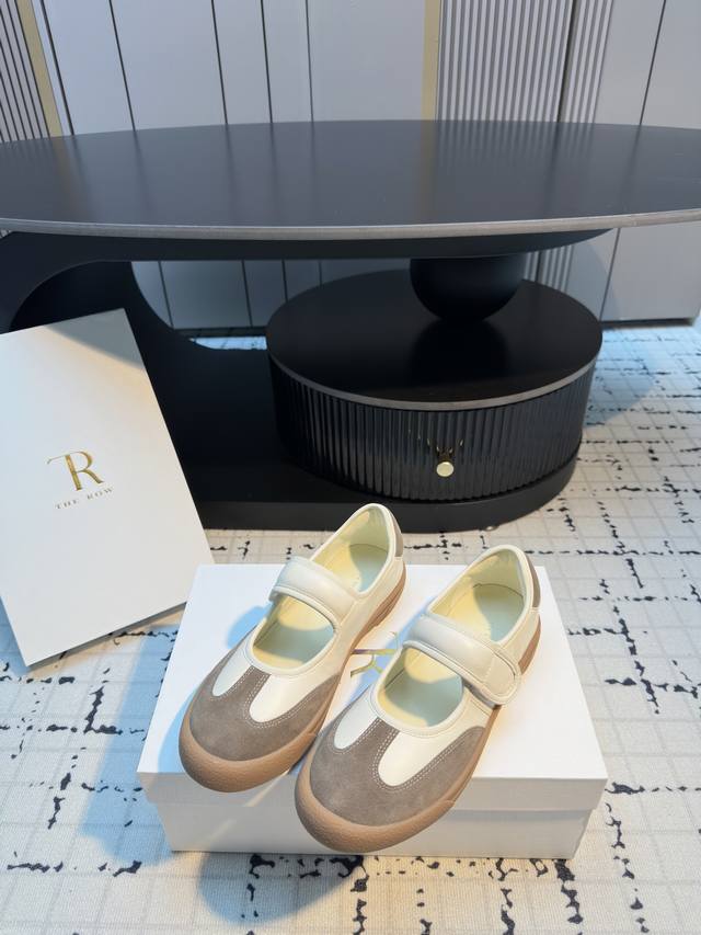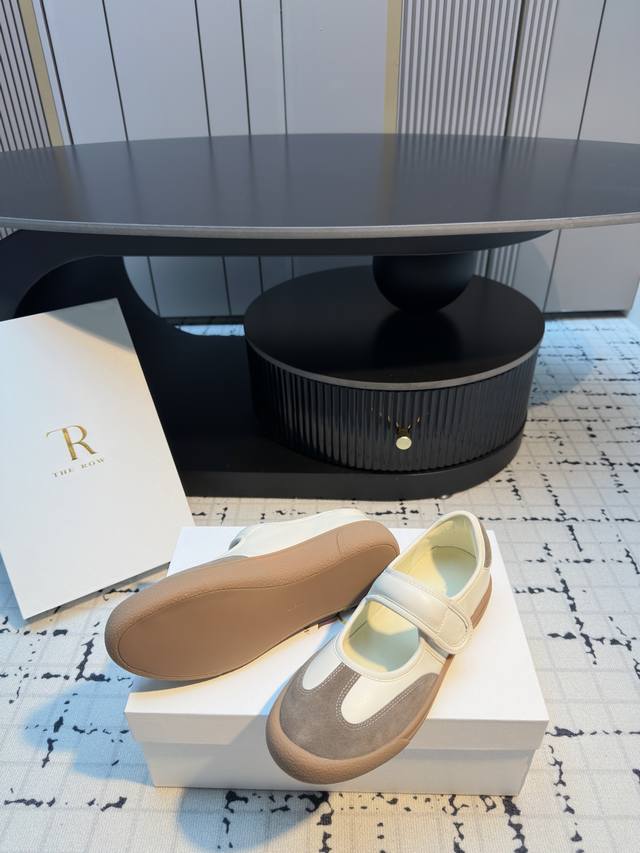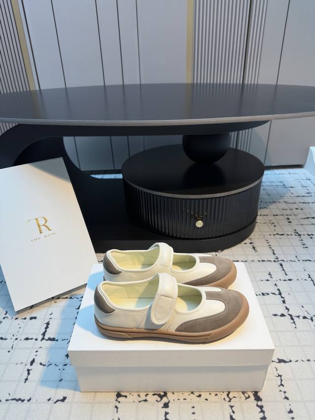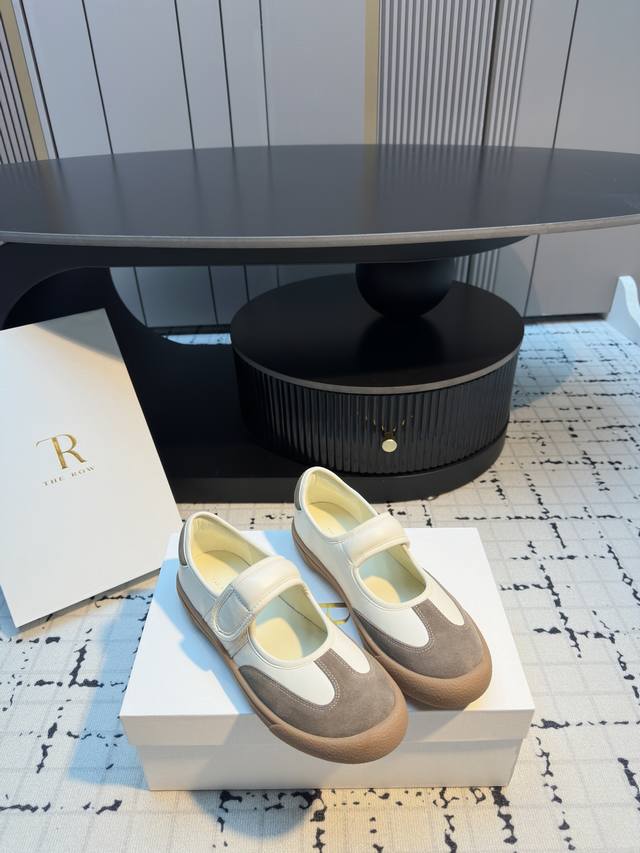 The Row 25Ss新品极简圆头拼色魔术贴玛丽珍单鞋 The Row新一季的设计延续极简主义 新款 Canal一脚蹬平底鞋 云朵般柔软的鞋体 兼具优质质感与