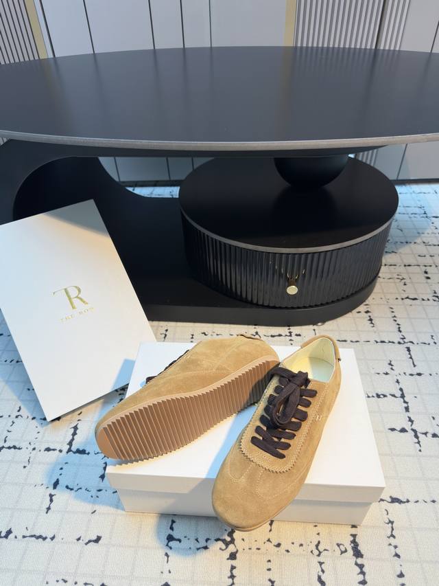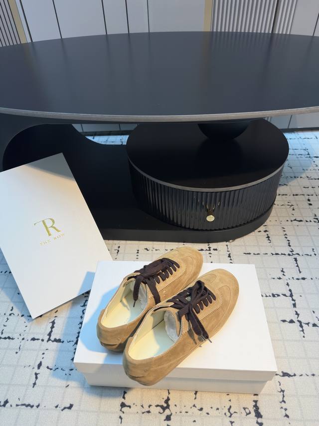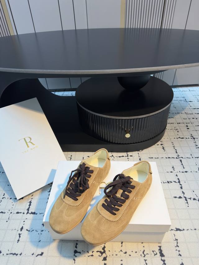 The Row 26春夏新款极简主义拼色系带休闲鞋阿甘德训鞋! DDD 这款低帮运动鞋是打造极简主义休闲夏日衣橱的理想穿搭之选,采用麂皮鞋面和同色系橡胶鞋底设计,优雅中不乏简约风格 DDD 极简风天花板 面料裁剪也很考究 随便一件上身都有种松弛又高级的感觉,真的可以说是完美的诠释了长期主义穿搭 DDD 鞋面:原版牛反绒 DDD 内里:羊皮 DDD 垫脚:羊皮 DDD 大底:原版开模橡胶大底 DDD 码数:35 40 40定做不退不换 DDD