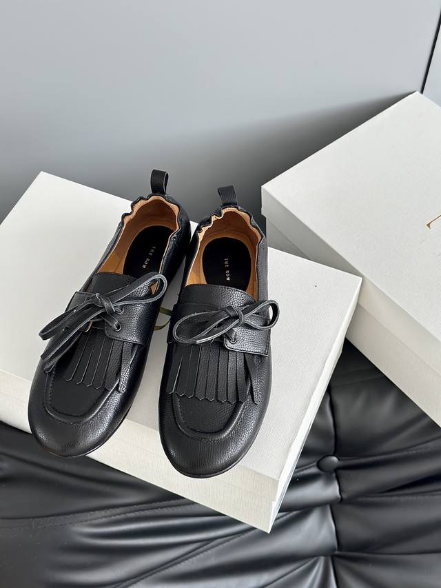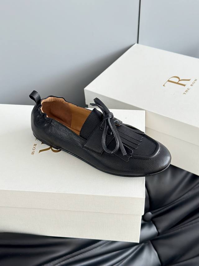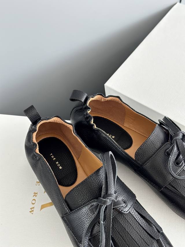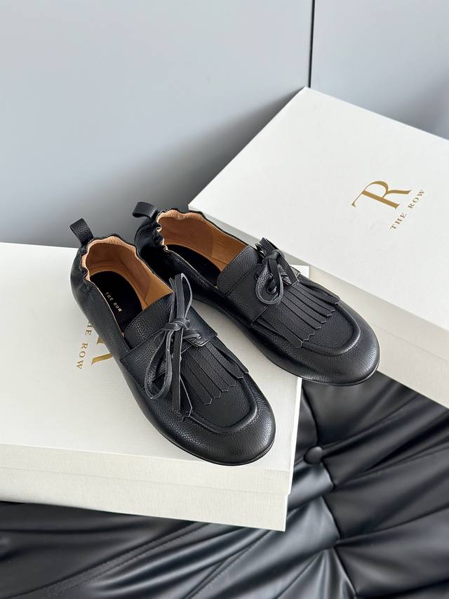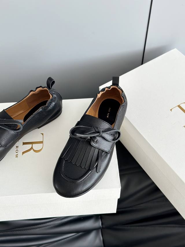 The Row 26春夏新款Tr流苏系带乐福鞋平底芭蕾舞鞋单鞋 鞋面流苏设计甜美又显大气,好看也不单调带点复古甜美风随意搭配都好看!很包脚实在太好看了,主要鞋子