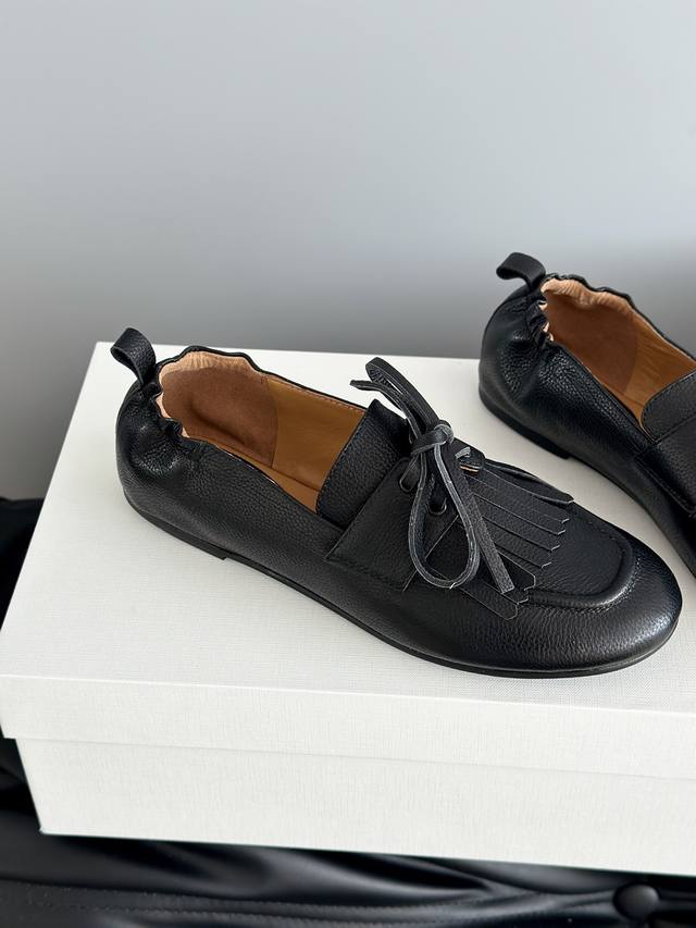 / The Row 26春夏新款Tr流苏系带乐福鞋平底芭蕾舞鞋单鞋 鞋面流苏设计甜美又显大气,好看也不单调带点复古甜美风随意搭配都好看!很包脚实在太好看了,主要鞋子