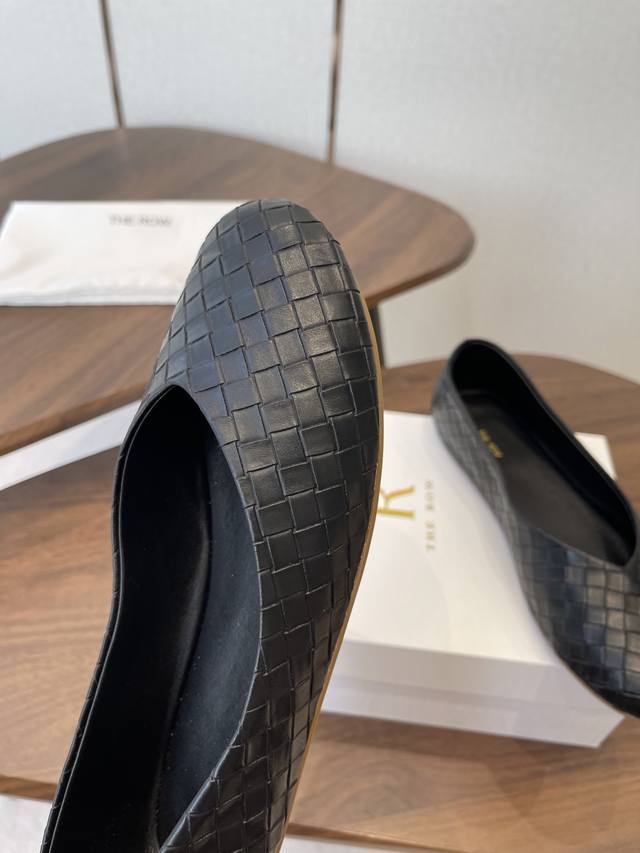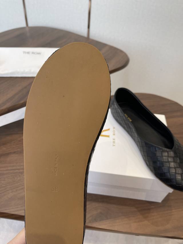 The Row 26Ss 春夏新款 单鞋编织鞋面 这款是Row经典款的改良,鞋底加厚,了三分之一,脚感会舒适不少,脚掌视觉上加宽了,更具松弛感,对宽脚越加友好!