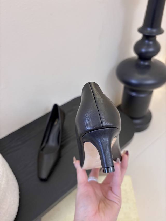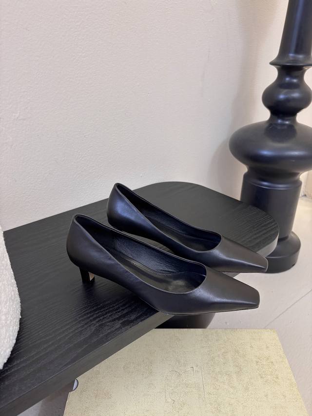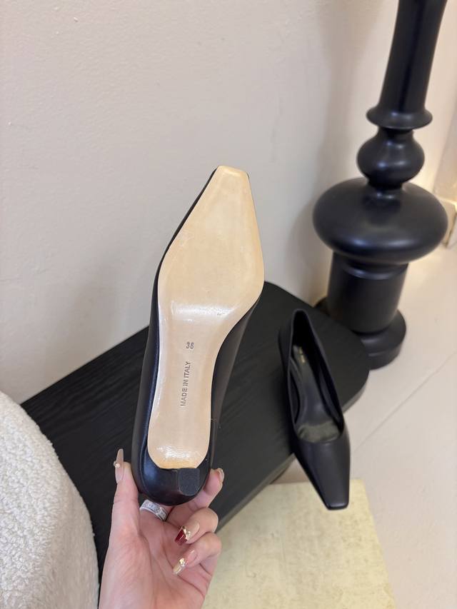 The Row26春夏法式简易高跟方头单鞋 Ddd 复古气质女王 整个鞋型简约大气,很干净利落又好搭配!日常穿搭、约会聚会等也能轻松驾驭! Ddd 穿上很显脚瘦,又在视觉上拉腿长!这质感,任谁看了都高呼Yyds由内到外散发着贵气感~光泽感拉满!而且舒适又耐穿!穿着轻便舒服,走路完全不累脚!日常通勤、逛街等统统都能Hold得住! Ddd 鞋面采用进口混种羊皮 天鹅绒 Ddd 内里垫脚羊皮 Ddd 意大利进口真皮大底 Ddd 跟高:4.5Cm Ddd 码数: 35-41 40、41定做不退换 DDD