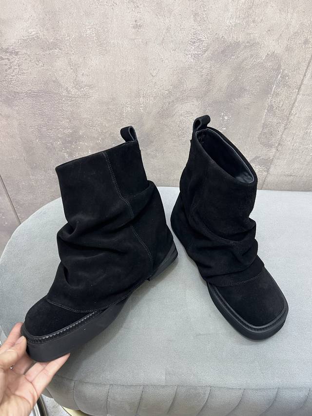 Theattico 秋冬系列厚底裤管靴褶皱短靴 DDD 顶级版本、一比一原版打造 DDD “Attico”在意大利语中是阁楼的意思 DDD 完美彰显奢华气息与时尚韵味 DDD 每一季所推出的潮酷单品从来不让我们失望 DDD 艺术与设计建筑与美学利落造型中尽显时髦气息 DDD 可爱不失性感鞋款不但非常有时尚感 DDD 干练风格,设计感很强,非常好看 DDD 高冷却不犀利,时髦又不媚俗 DDD 鞋面: 牛反绒 牛皮 DDD 内里: 进口牛皮 DDD 鞋跟: 4.5Cm DDD 大底: Italy进口真皮大底